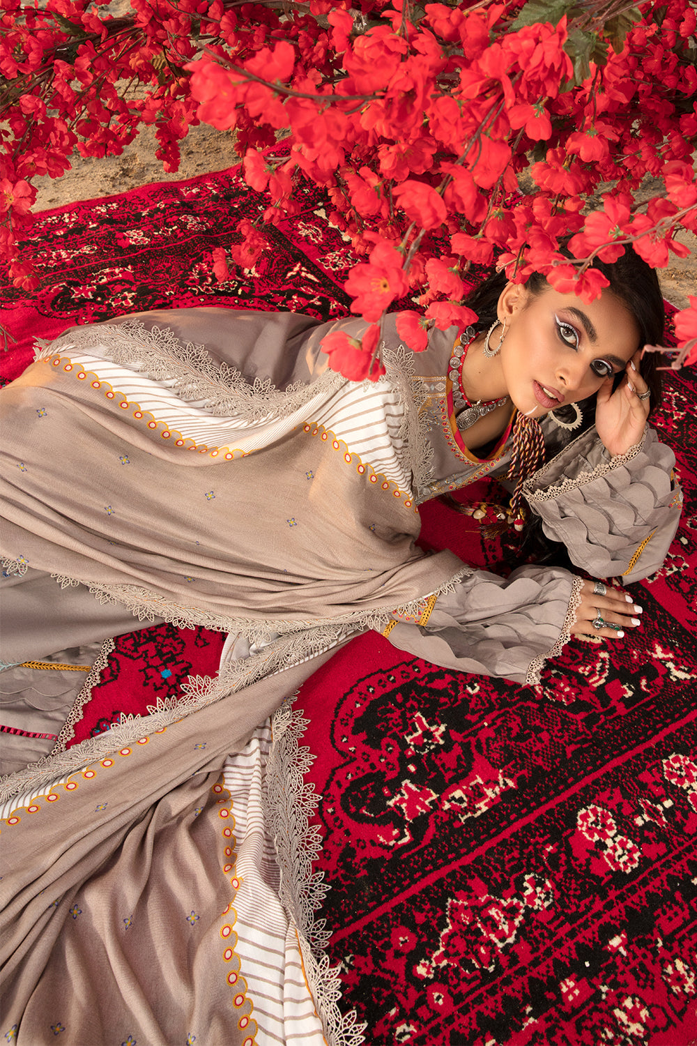 Stitched articles come with trousers tailored to match the unstitched trouser fabric provided. Please note that any appearance of shararas/ghararas in product images is for shoot purposes only unless otherwise specified in product details.