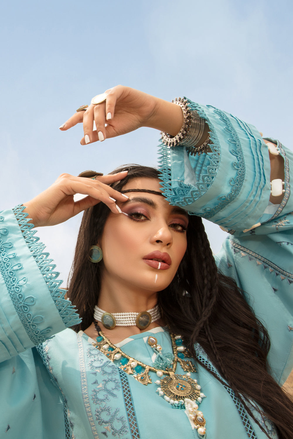 Stitched articles come with trousers tailored to match the unstitched trouser fabric provided. Please note that any appearance of shararas/ghararas in product images is for shoot purposes only unless otherwise specified in product details.