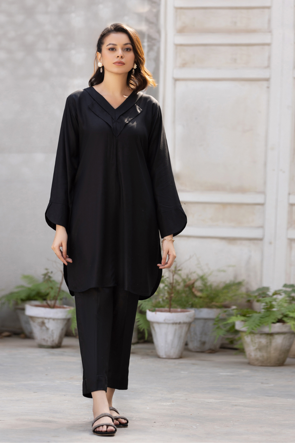 Stitched articles come with trousers tailored to match the unstitched trouser fabric provided. Please note that any appearance of shararas/ghararas in product images is for shoot purposes only unless otherwise specified in product details.
