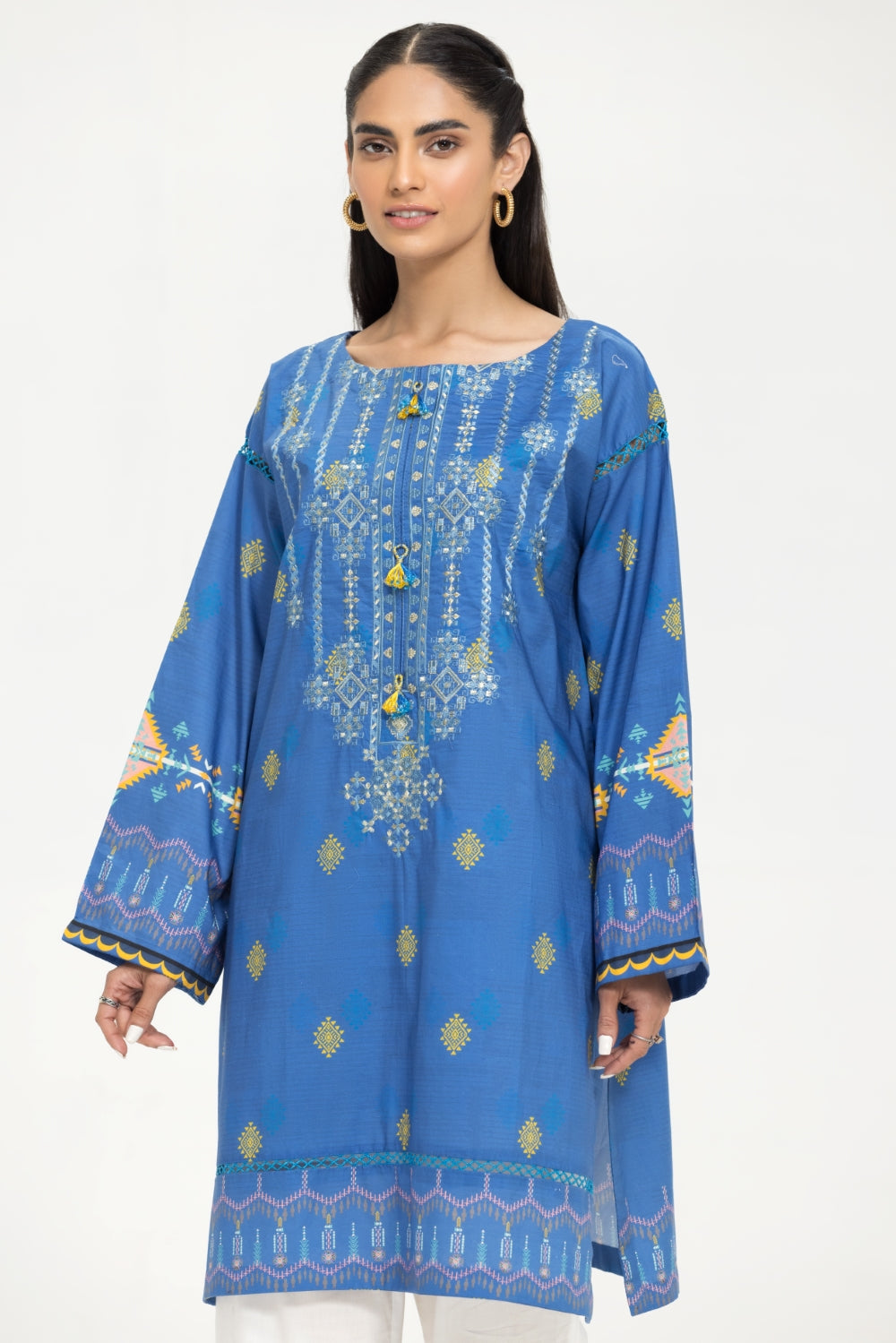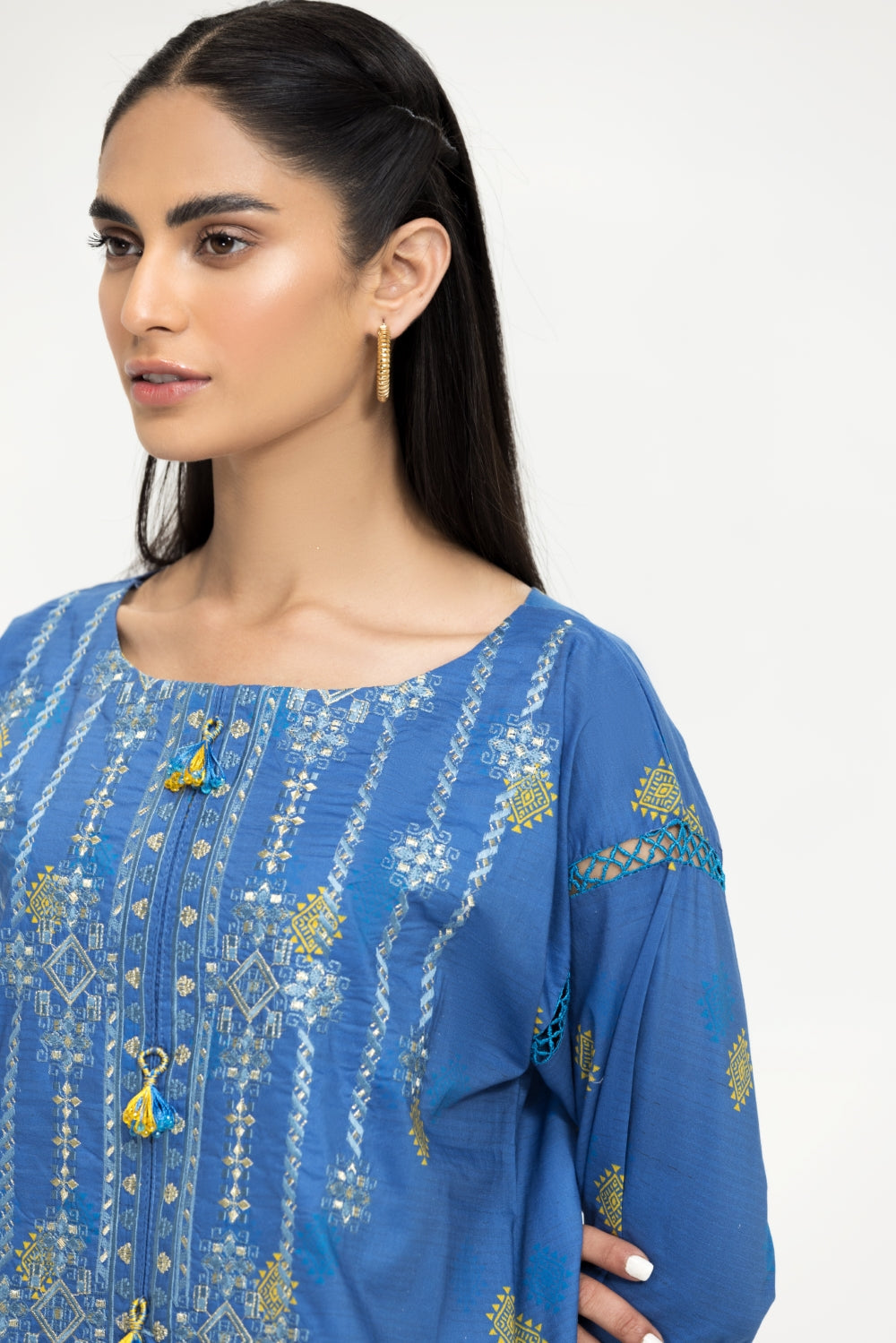 Stitched articles come with trousers tailored to match the unstitched trouser fabric provided. Please note that any appearance of shararas/ghararas in product images is for shoot purposes only unless otherwise specified in product details.