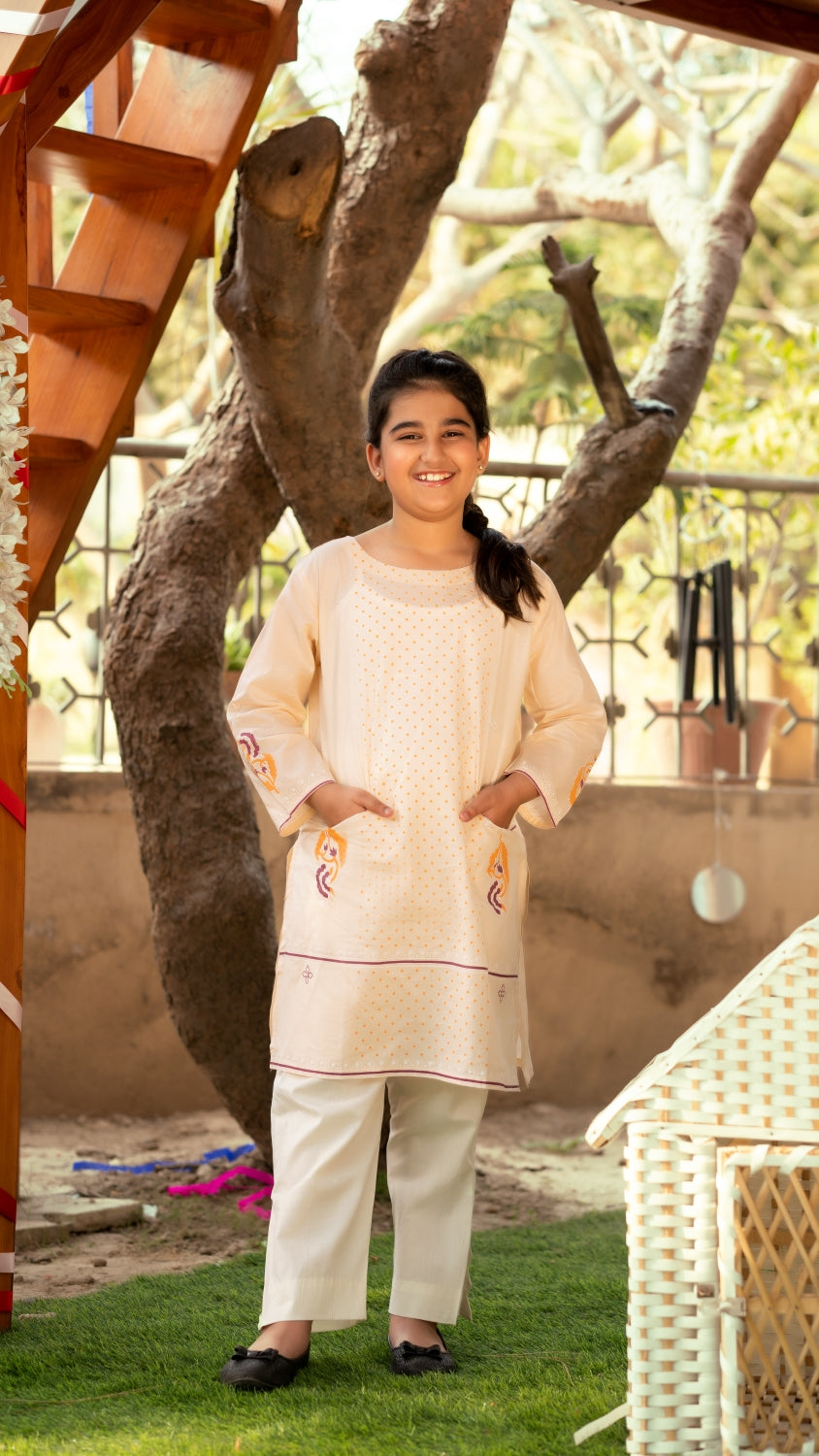 Stitched articles come with trousers tailored to match the unstitched trouser fabric provided. Please note that any appearance of shararas/ghararas in product images is for shoot purposes only unless otherwise specified in product details.