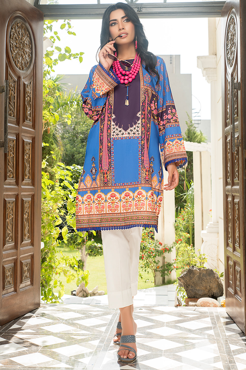 Stitched articles come with trousers tailored to match the unstitched trouser fabric provided. Please note that any appearance of shararas/ghararas in product images is for shoot purposes only unless otherwise specified in product details.