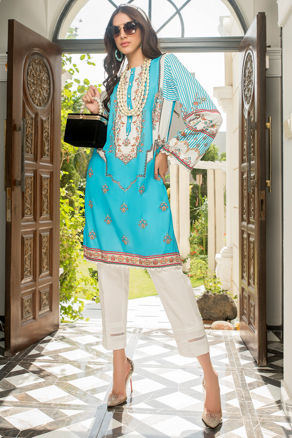 Stitched articles come with trousers tailored to match the unstitched trouser fabric provided. Please note that any appearance of shararas/ghararas in product images is for shoot purposes only unless otherwise specified in product details.