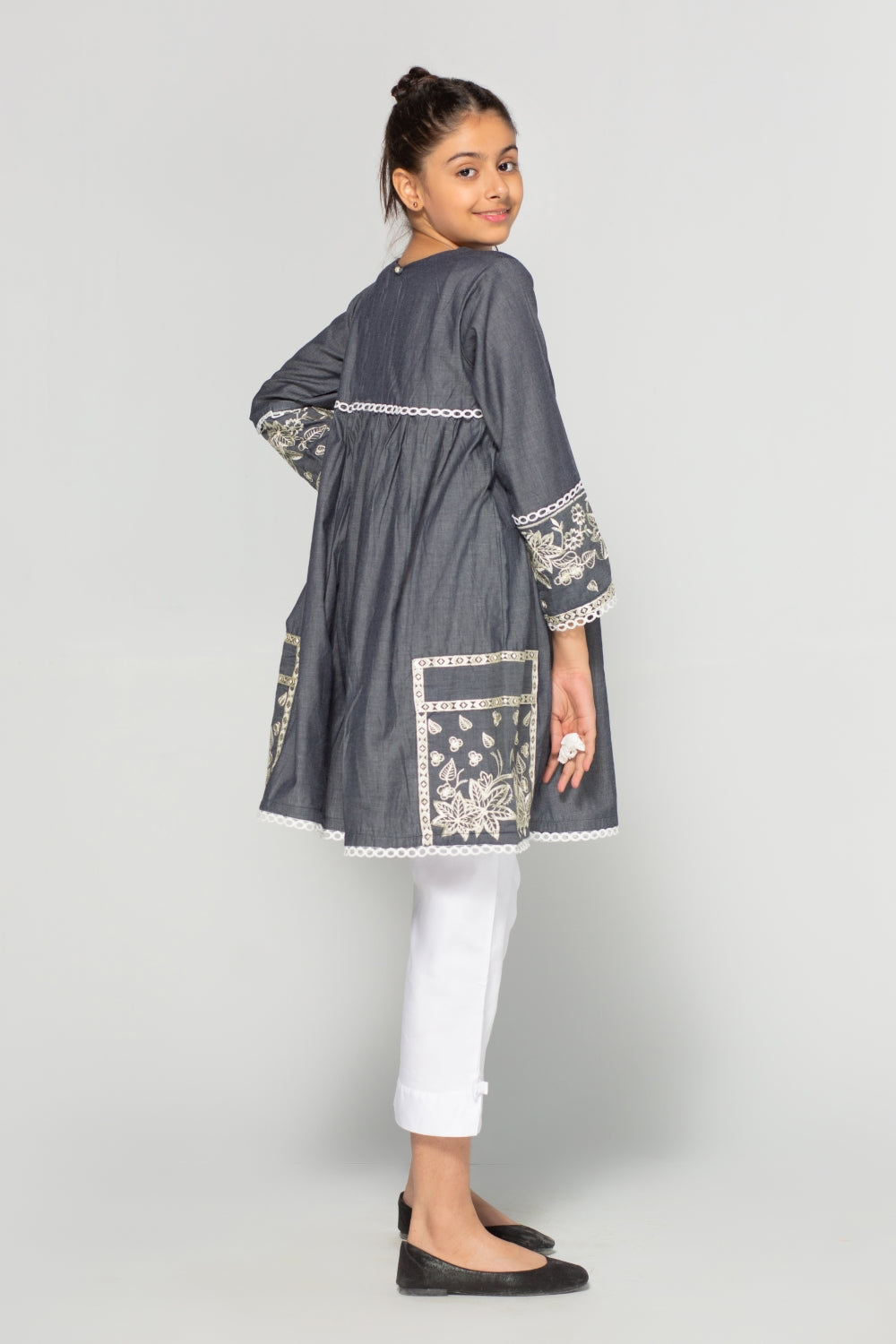DENIM STITCHED FRONT EMBROIDED SHIRT