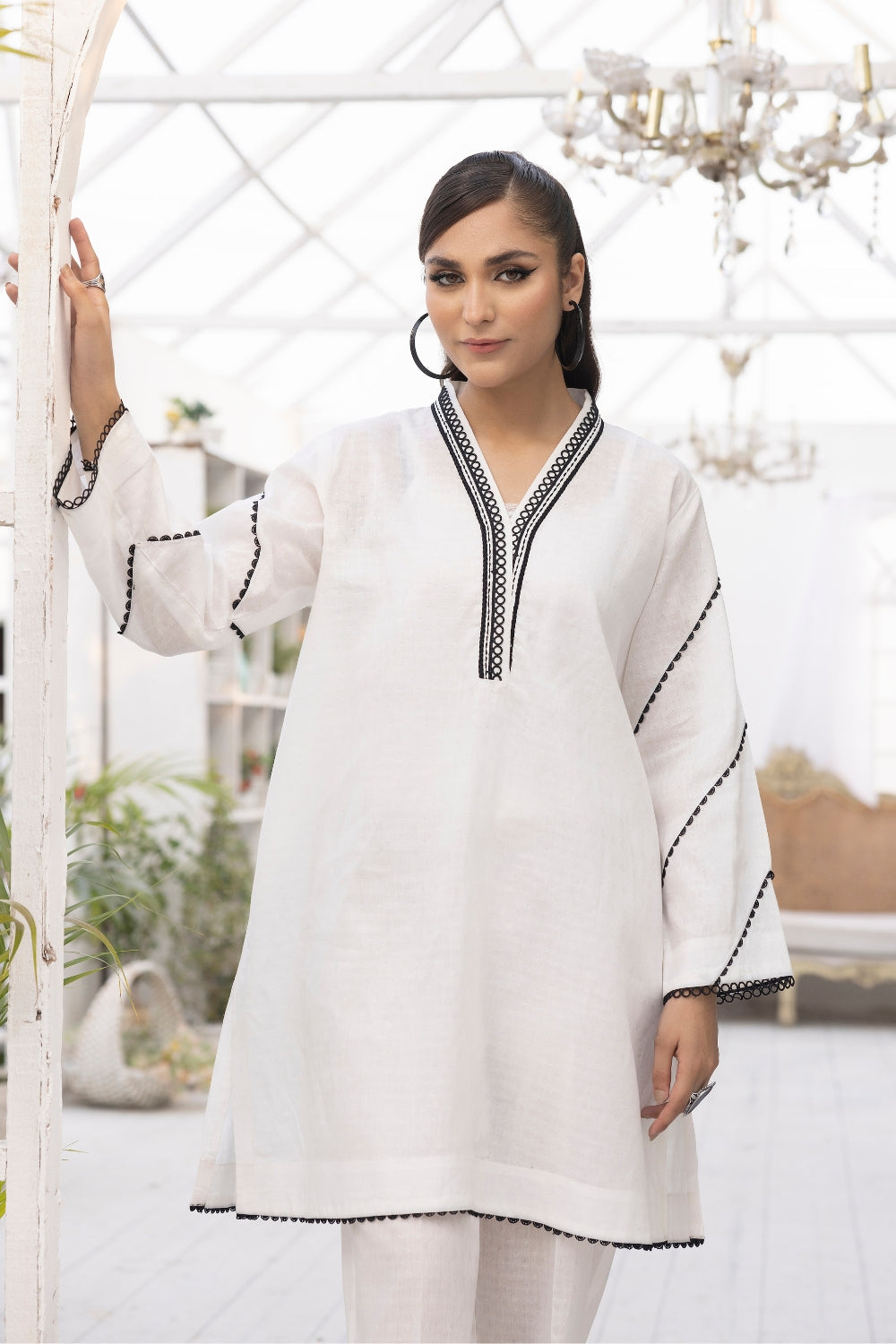 Stitched articles come with trousers tailored to match the unstitched trouser fabric provided. Please note that any appearance of shararas/ghararas in product images is for shoot purposes only unless otherwise specified in product details.