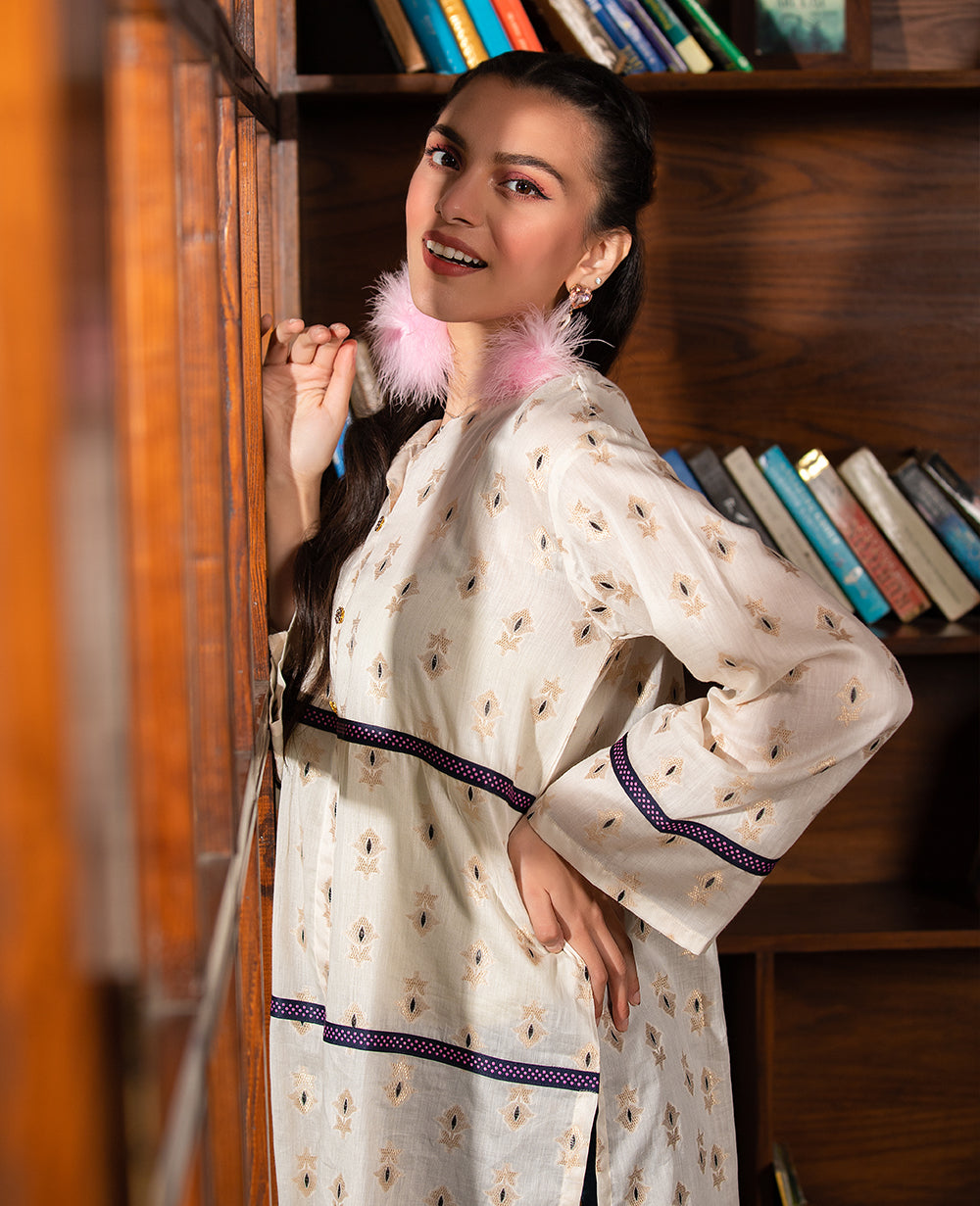 Stitched articles come with trousers tailored to match the unstitched trouser fabric provided. Please note that any appearance of shararas/ghararas in product images is for shoot purposes only unless otherwise specified in product details.
