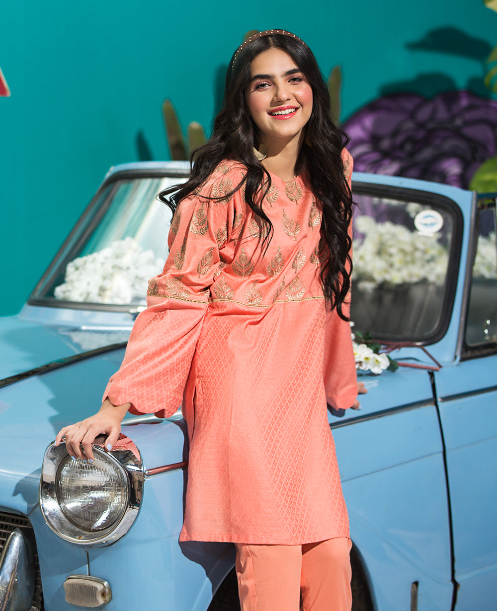 Stitched articles come with trousers tailored to match the unstitched trouser fabric provided. Please note that any appearance of shararas/ghararas in product images is for shoot purposes only unless otherwise specified in product details.