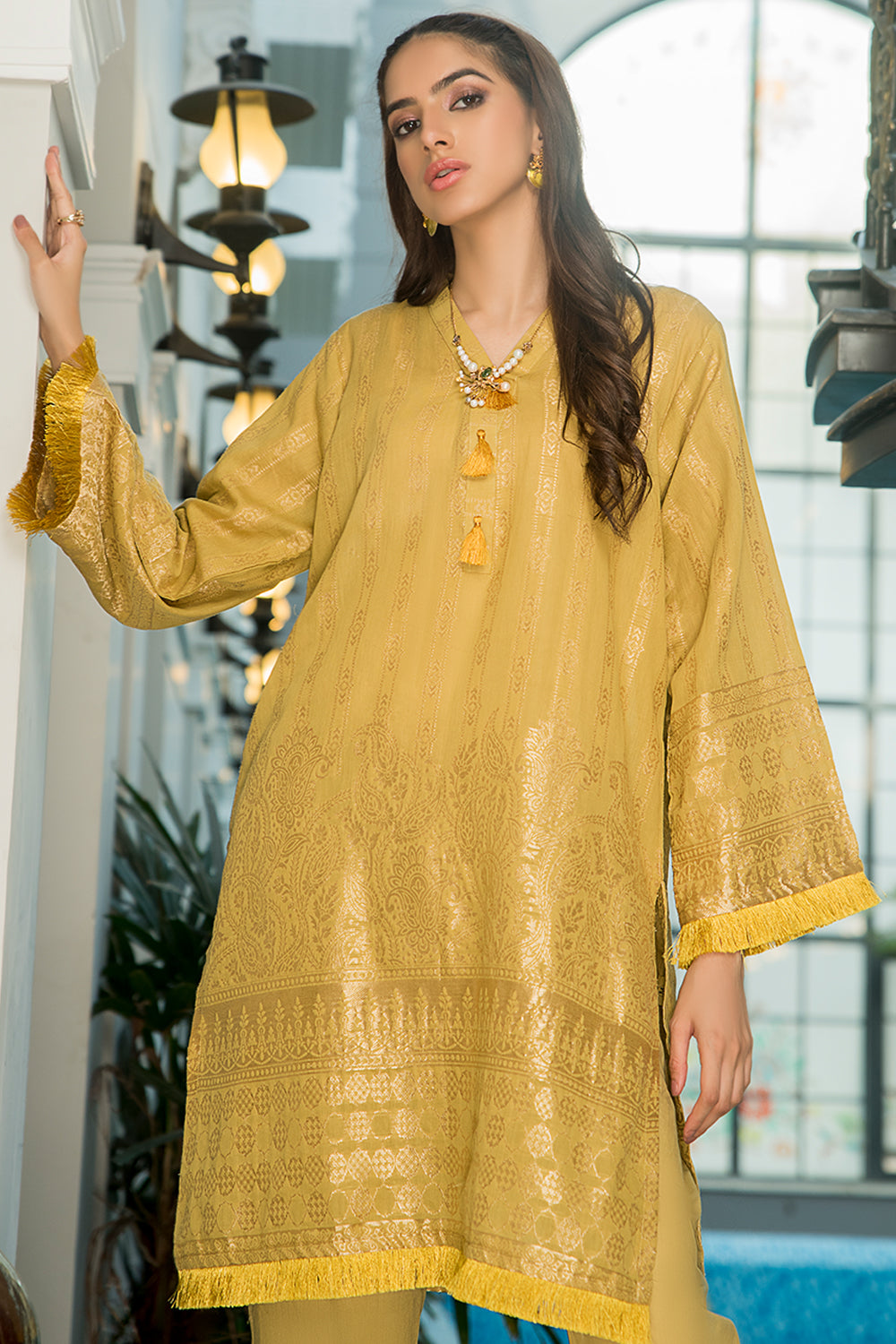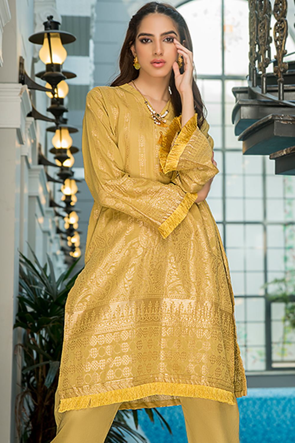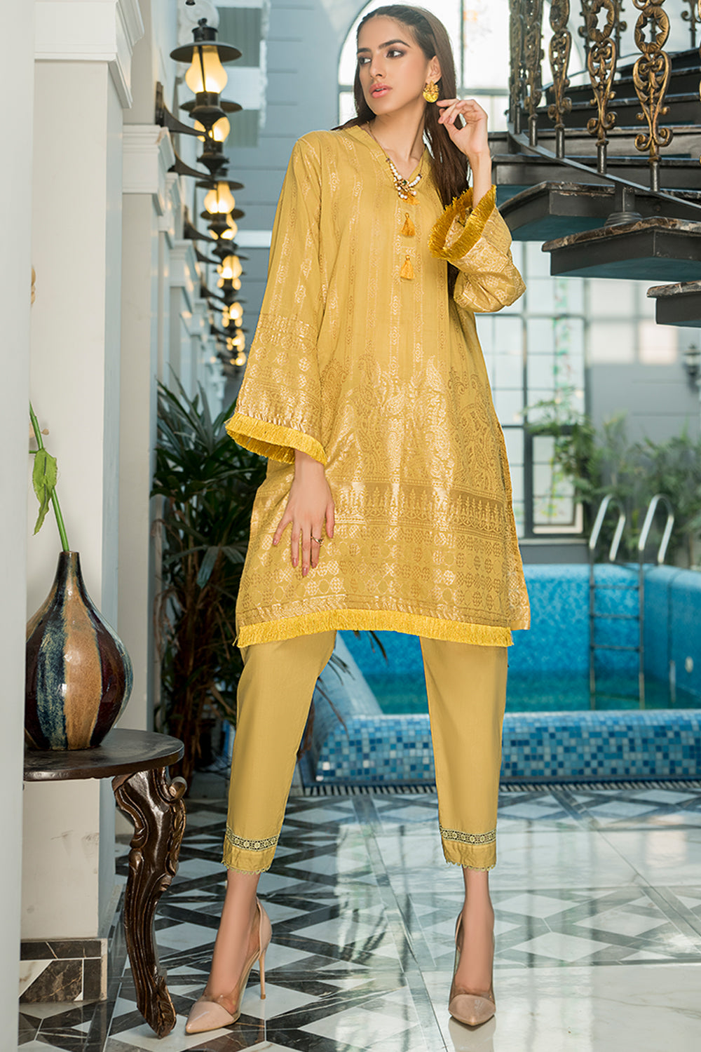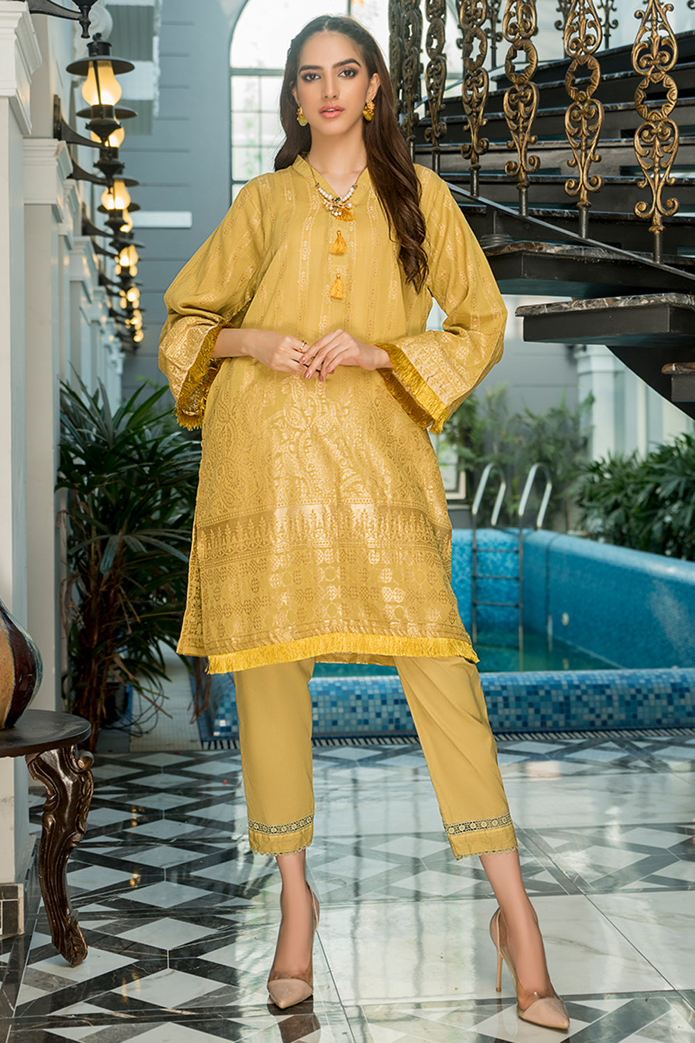 Stitched articles come with trousers tailored to match the unstitched trouser fabric provided. Please note that any appearance of shararas/ghararas in product images is for shoot purposes only unless otherwise specified in product details.