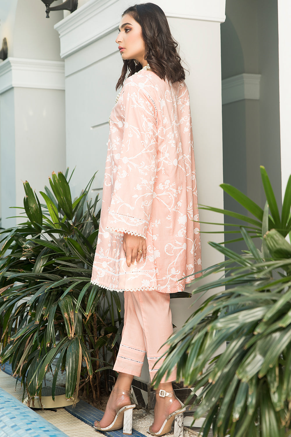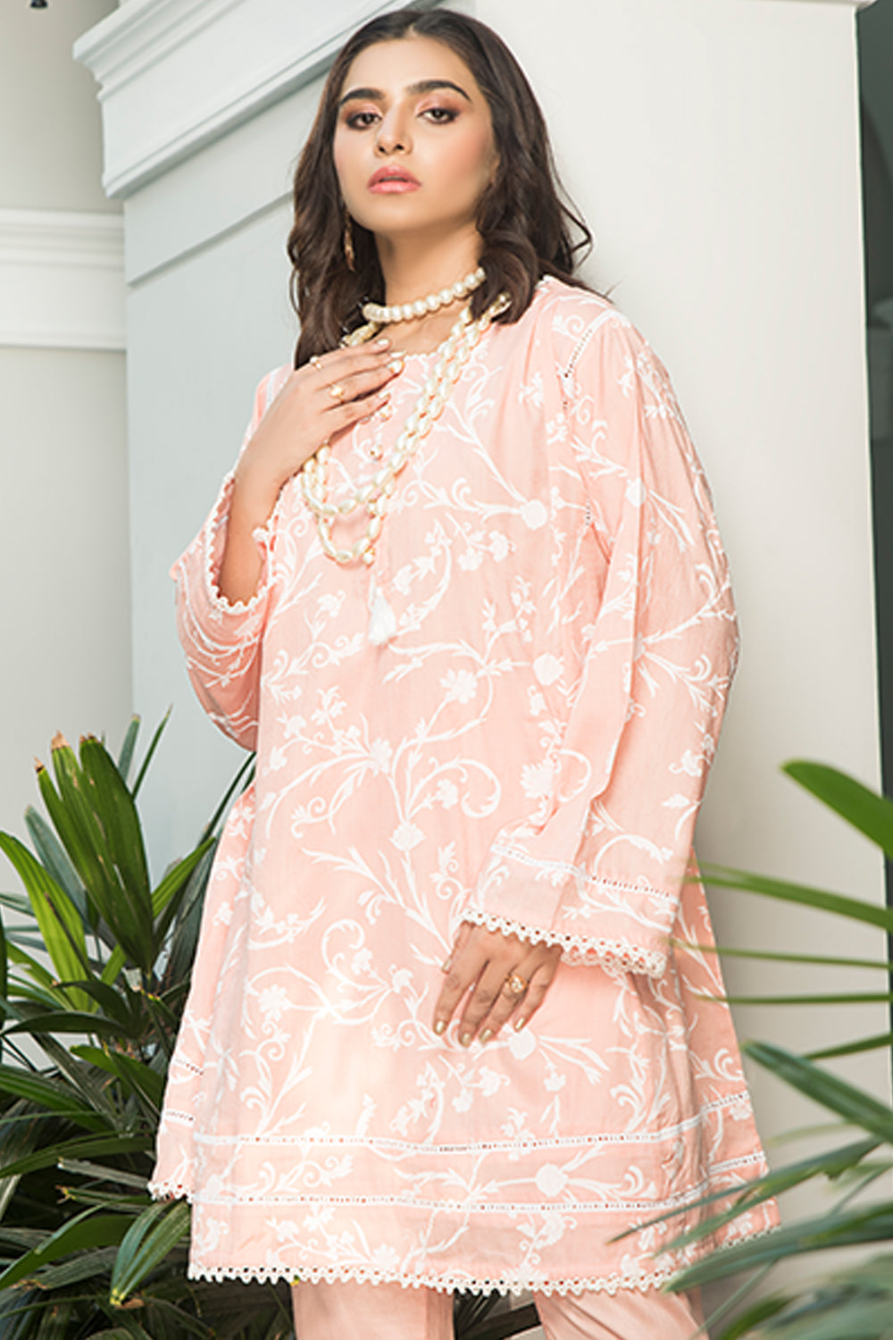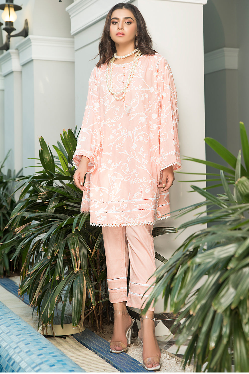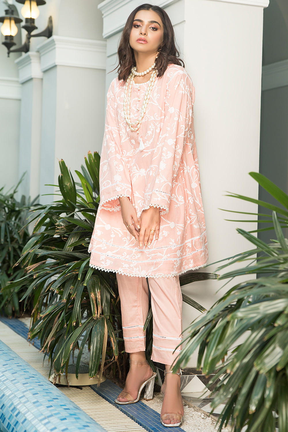 Stitched articles come with trousers tailored to match the unstitched trouser fabric provided. Please note that any appearance of shararas/ghararas in product images is for shoot purposes only unless otherwise specified in product details.