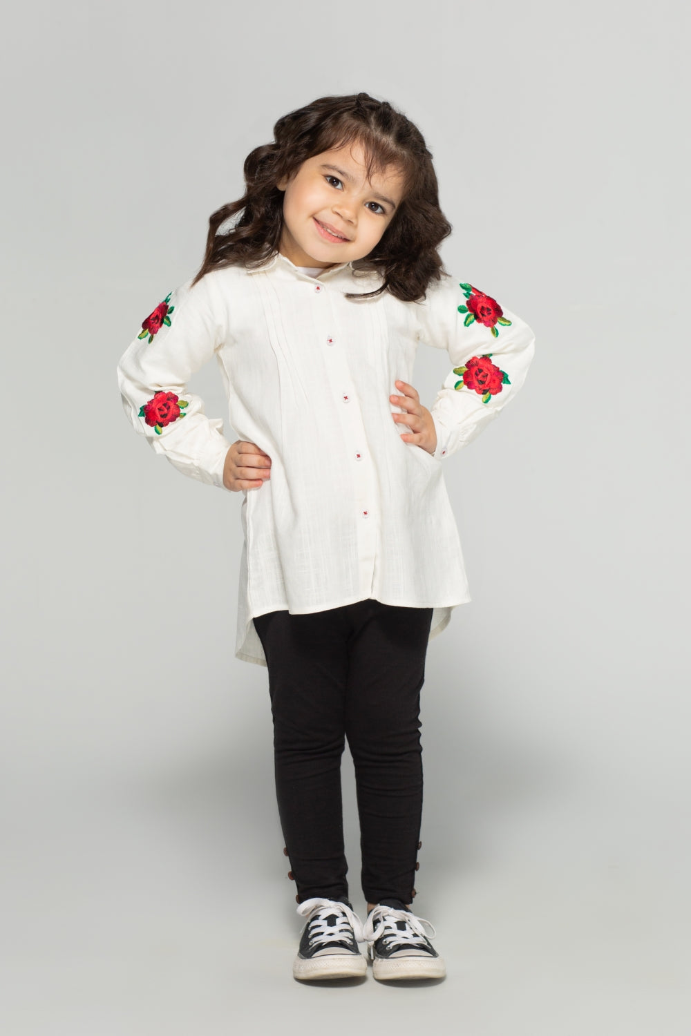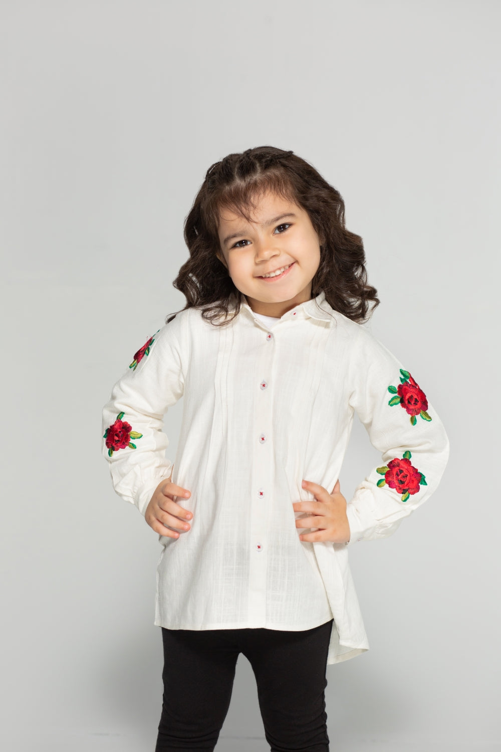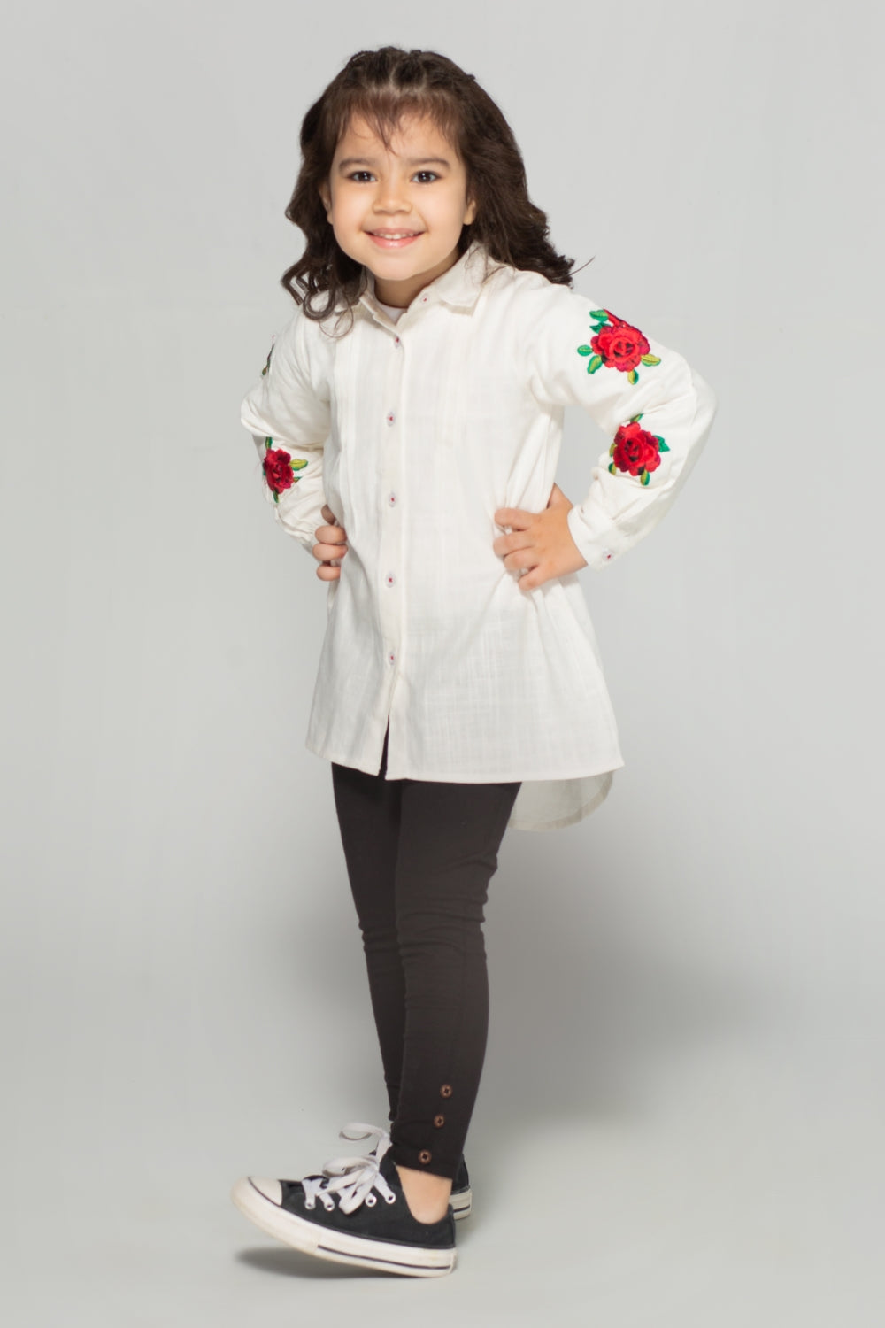 STITCHED SHIRT WITH EMBROIDED SLEEVES