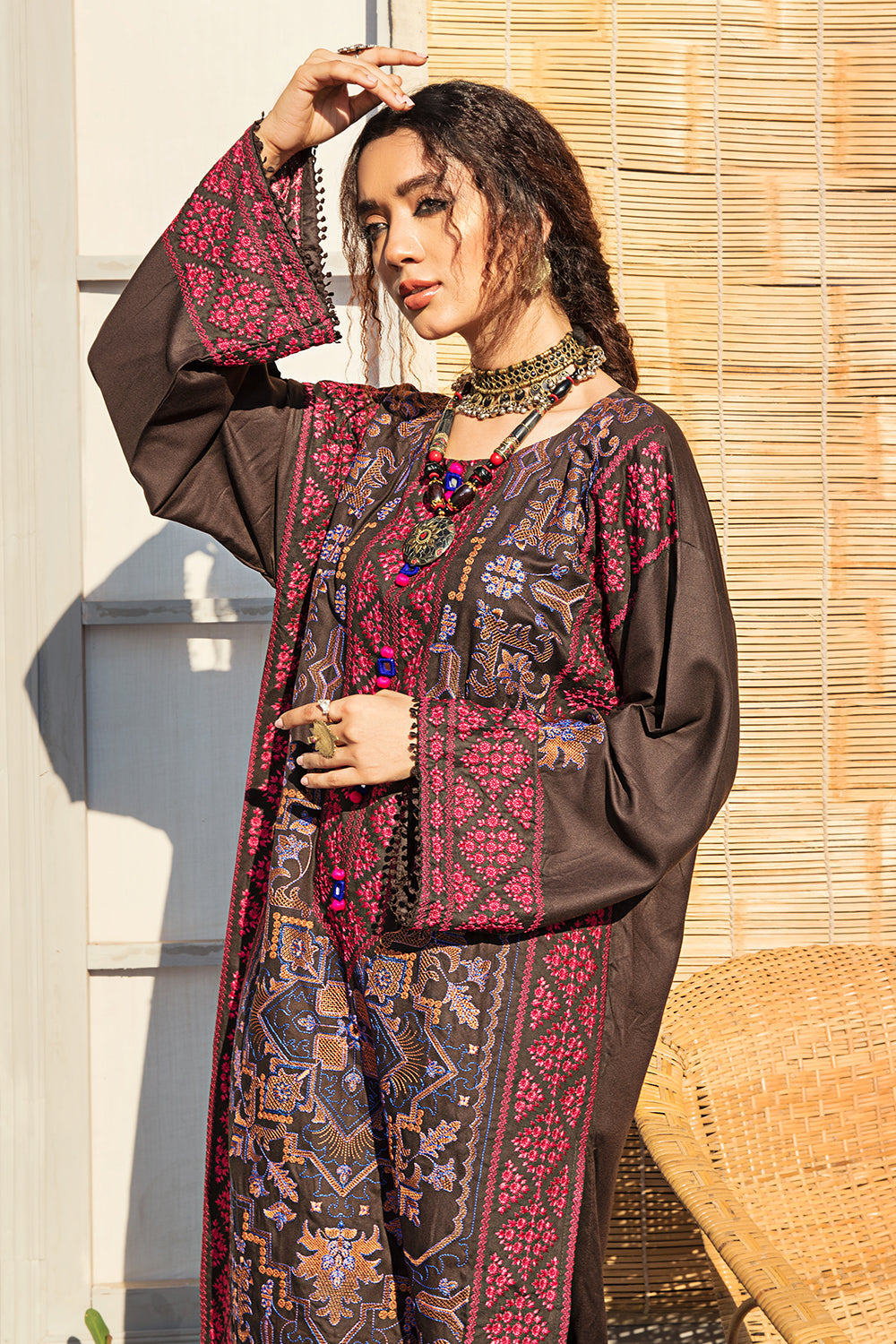 Linen Stitched Front And Sleeve Embroided Shirt + Plain Trouser