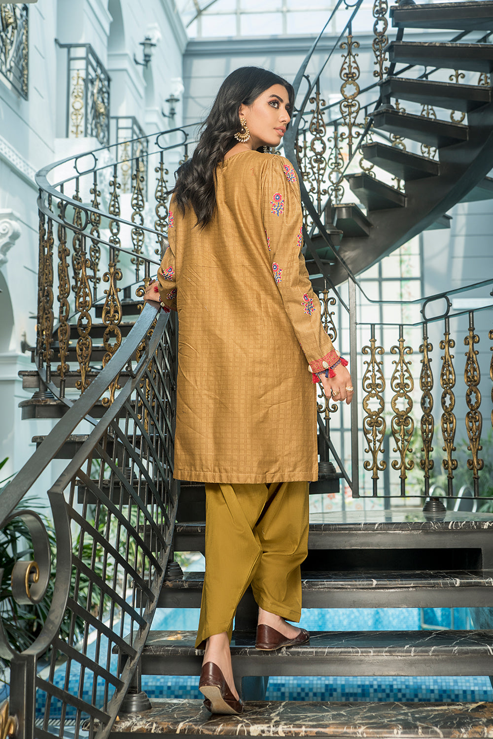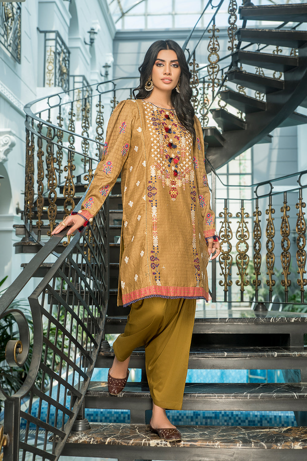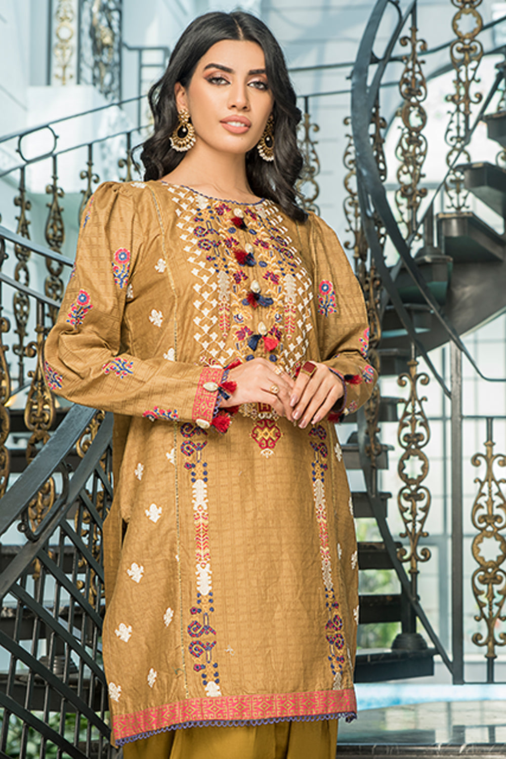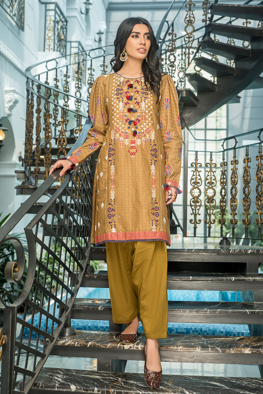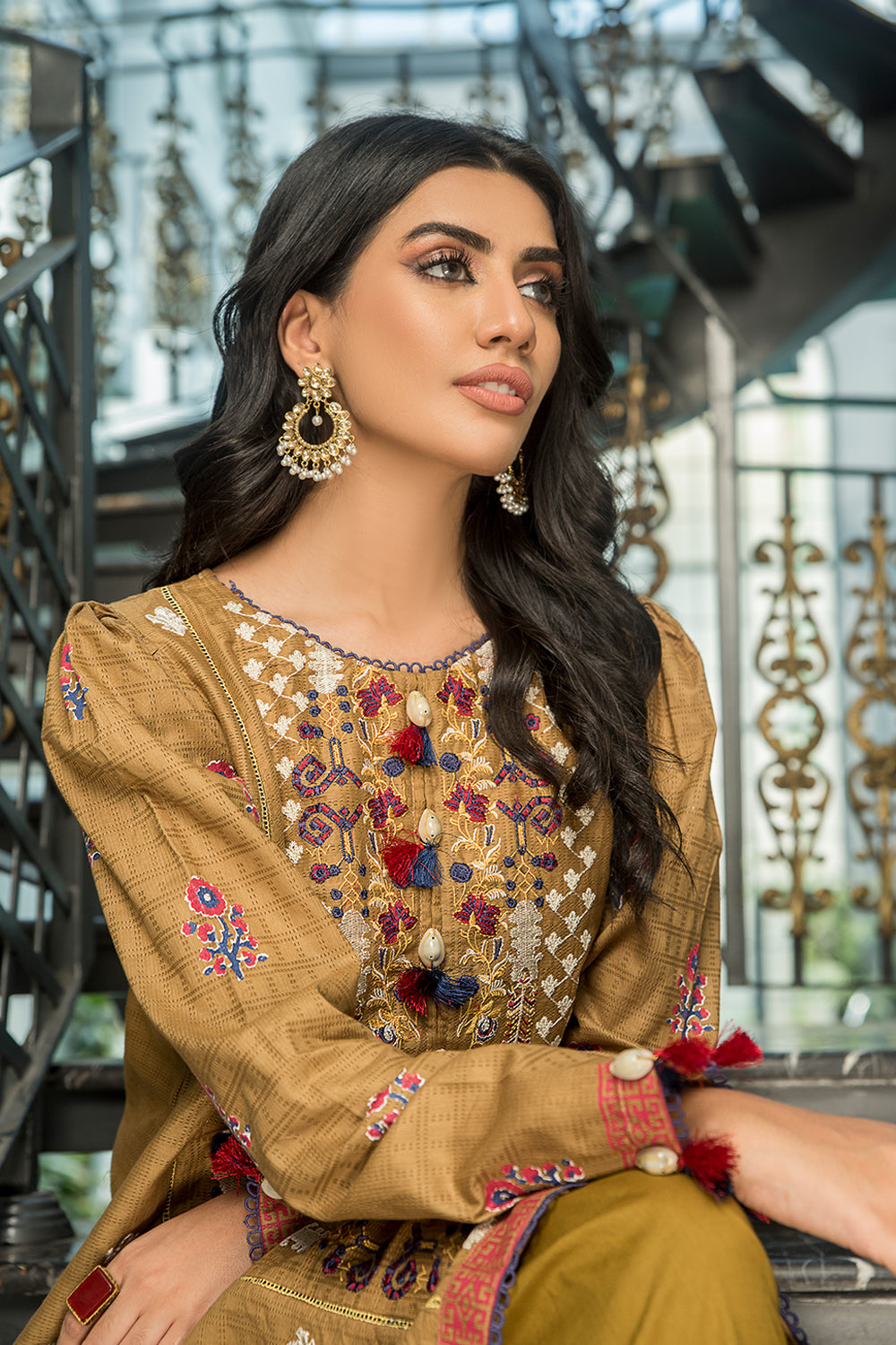 Stitched articles come with trousers tailored to match the unstitched trouser fabric provided. Please note that any appearance of shararas/ghararas in product images is for shoot purposes only unless otherwise specified in product details.
