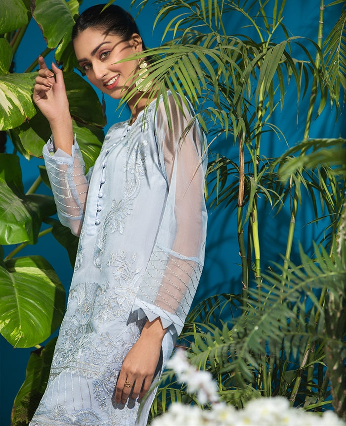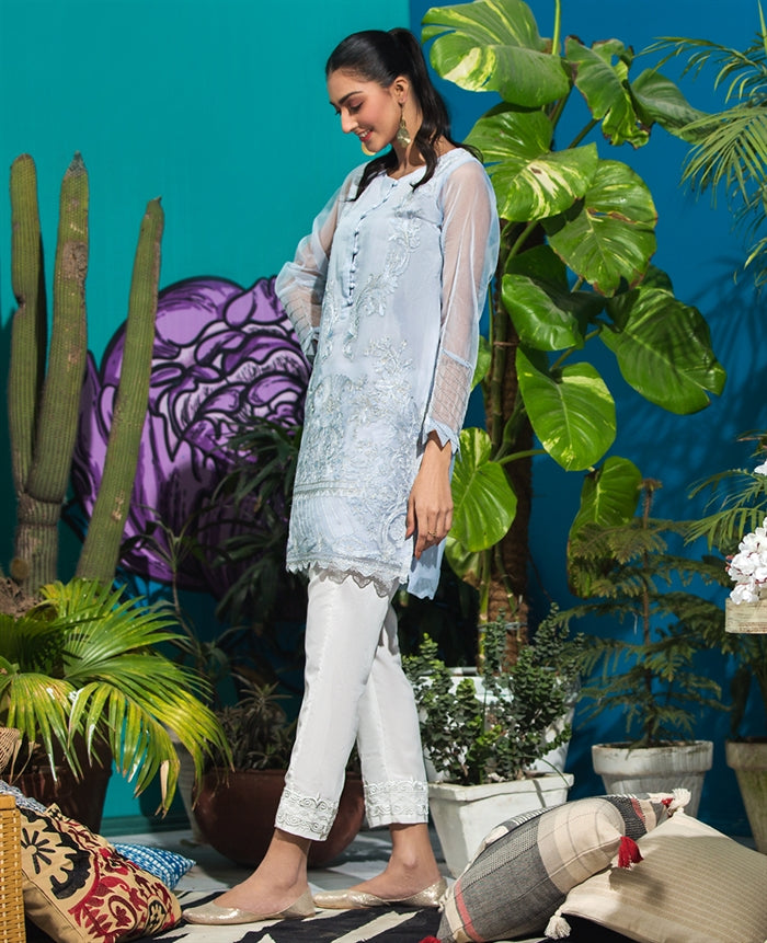 Organza Emb Single Shirt With Slip