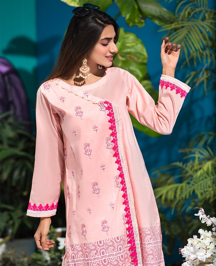 Stitched articles come with trousers tailored to match the unstitched trouser fabric provided. Please note that any appearance of shararas/ghararas in product images is for shoot purposes only unless otherwise specified in product details.