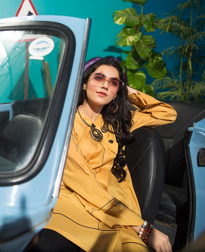Stitched articles come with trousers tailored to match the unstitched trouser fabric provided. Please note that any appearance of shararas/ghararas in product images is for shoot purposes only unless otherwise specified in product details.