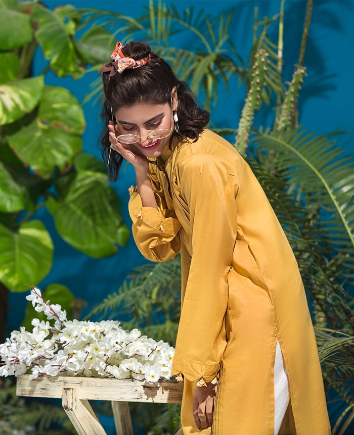Stitched articles come with trousers tailored to match the unstitched trouser fabric provided. Please note that any appearance of shararas/ghararas in product images is for shoot purposes only unless otherwise specified in product details.