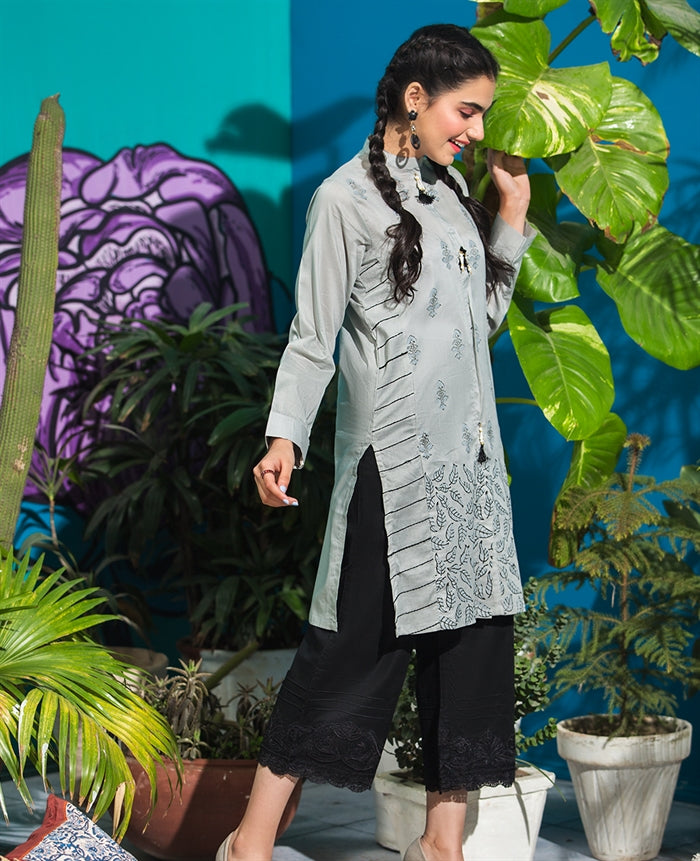 Stitched articles come with trousers tailored to match the unstitched trouser fabric provided. Please note that any appearance of shararas/ghararas in product images is for shoot purposes only unless otherwise specified in product details.