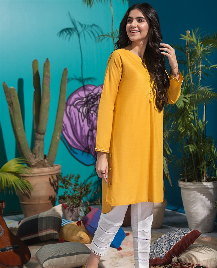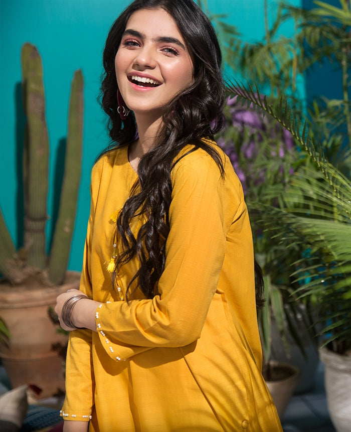 Stitched articles come with trousers tailored to match the unstitched trouser fabric provided. Please note that any appearance of shararas/ghararas in product images is for shoot purposes only unless otherwise specified in product details.