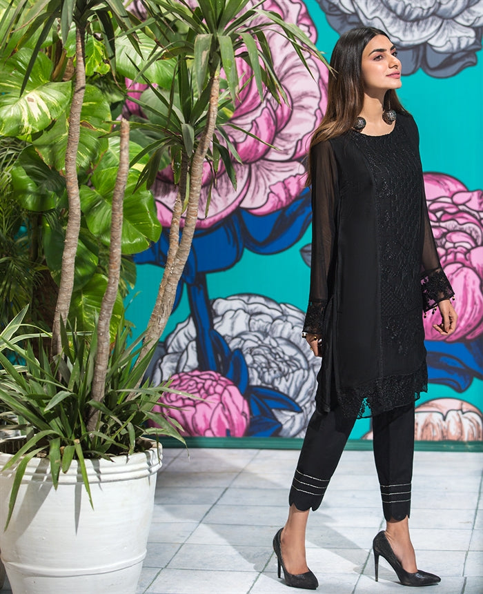 Chiffon Emb Single Shirt With Slip