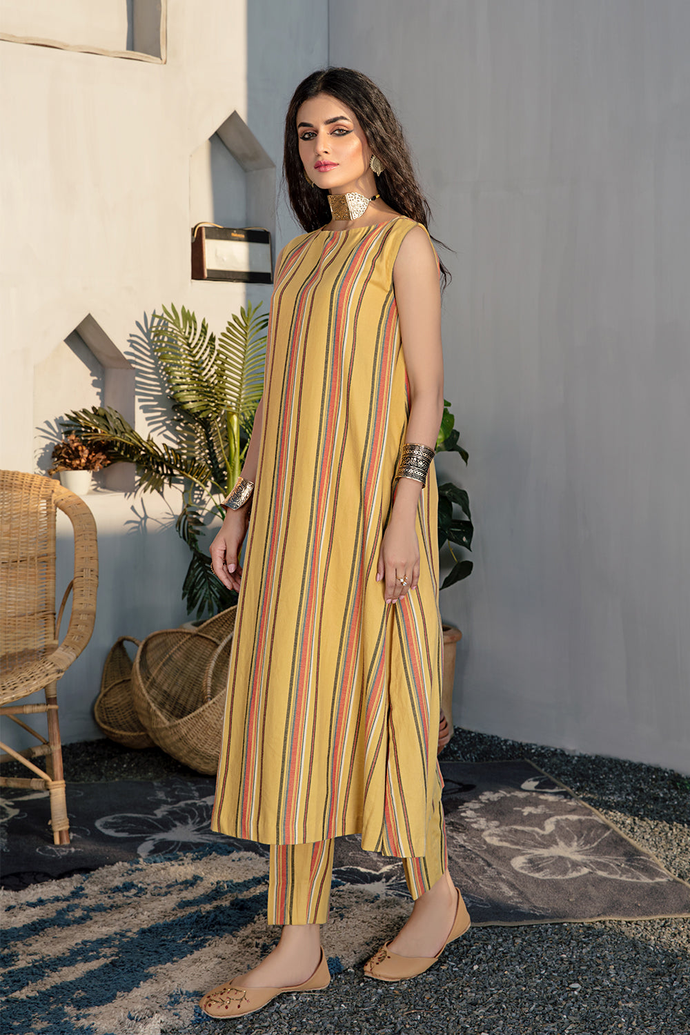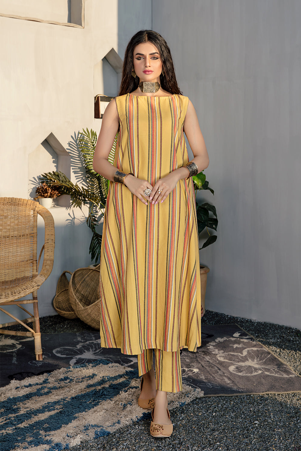 Stitched articles come with trousers tailored to match the unstitched trouser fabric provided. Please note that any appearance of shararas/ghararas in product images is for shoot purposes only unless otherwise specified in product details.