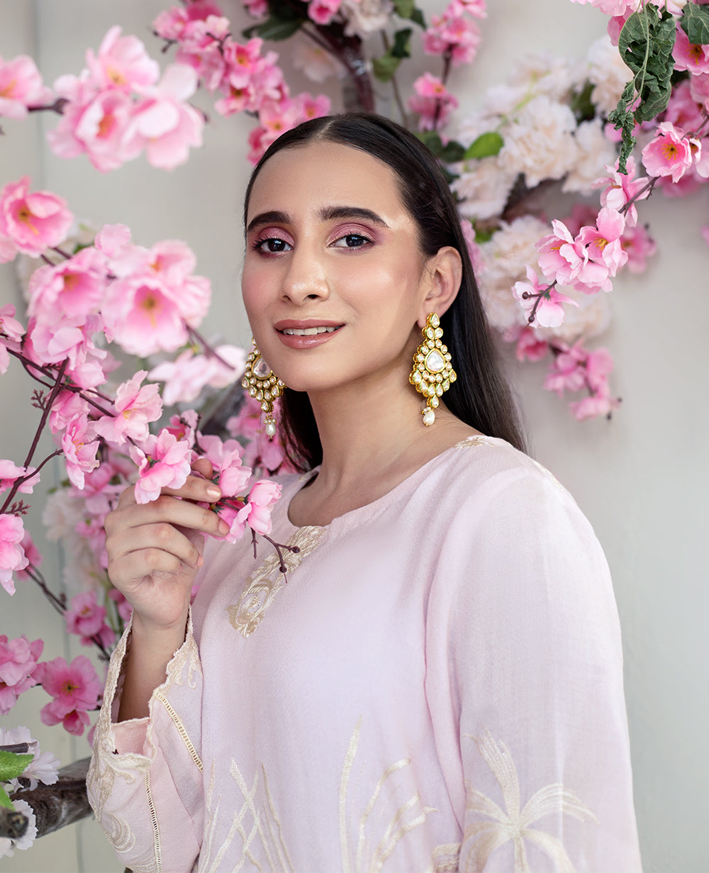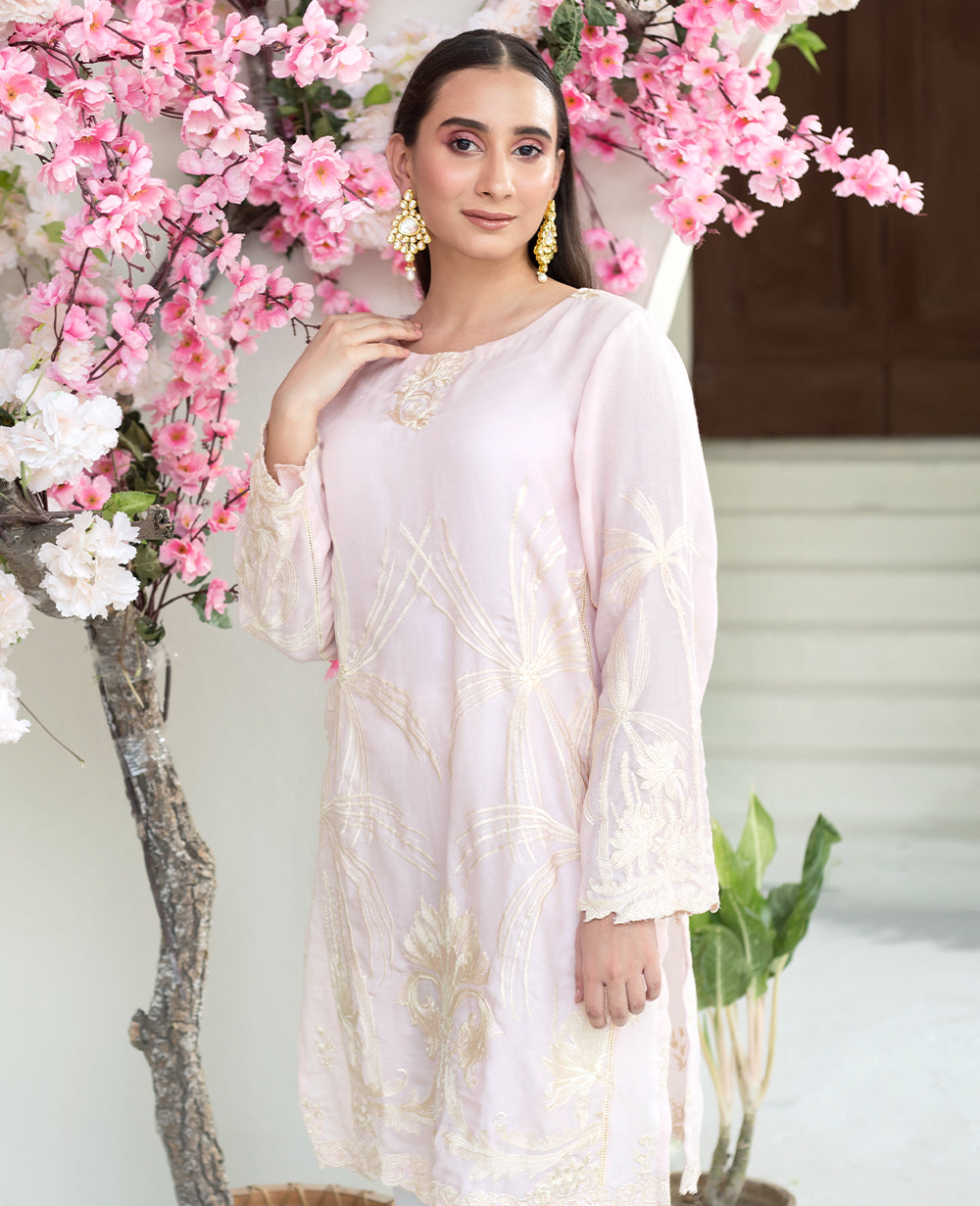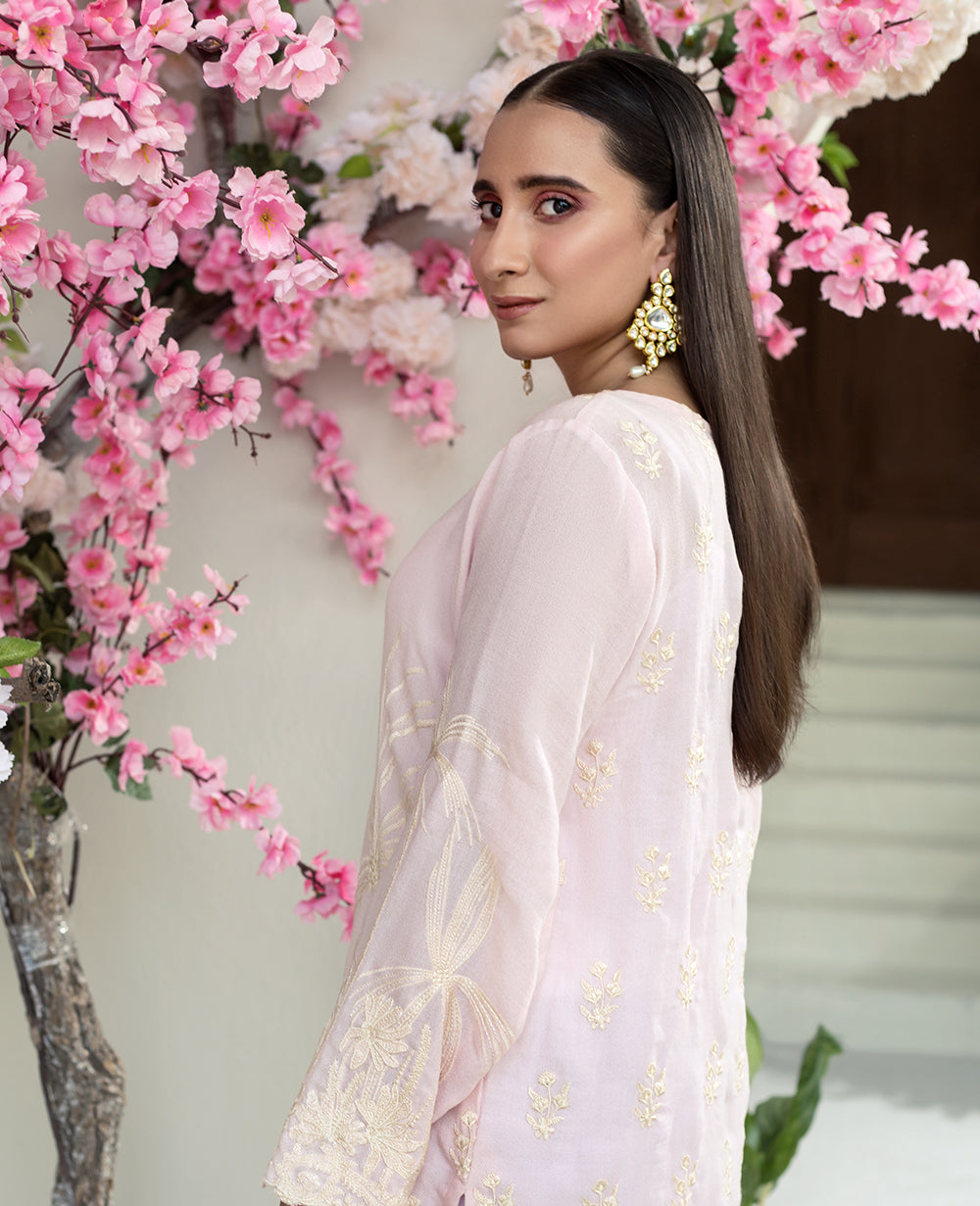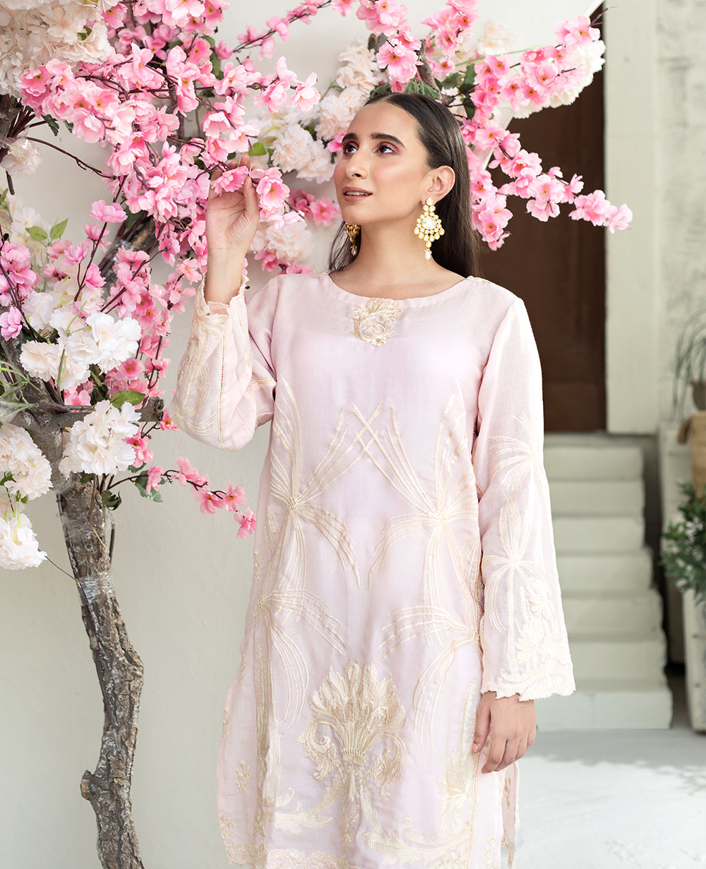 Stitched articles come with trousers tailored to match the unstitched trouser fabric provided. Please note that any appearance of shararas/ghararas in product images is for shoot purposes only unless otherwise specified in product details.