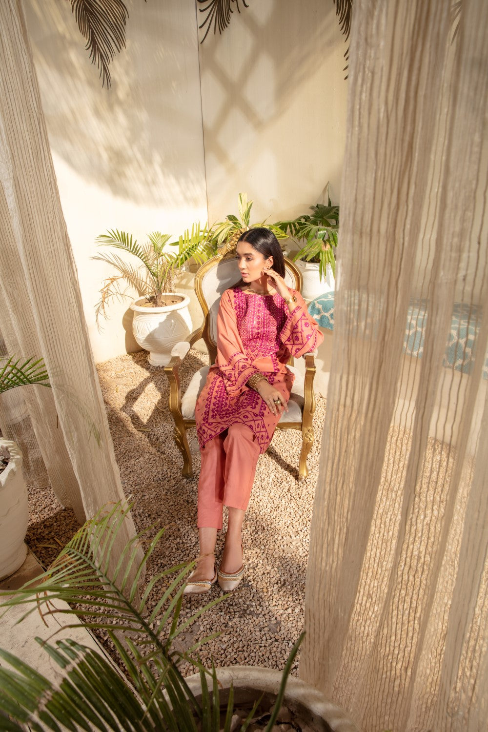 Stitched articles come with trousers tailored to match the unstitched trouser fabric provided. Please note that any appearance of shararas/ghararas in product images is for shoot purposes only unless otherwise specified in product details.