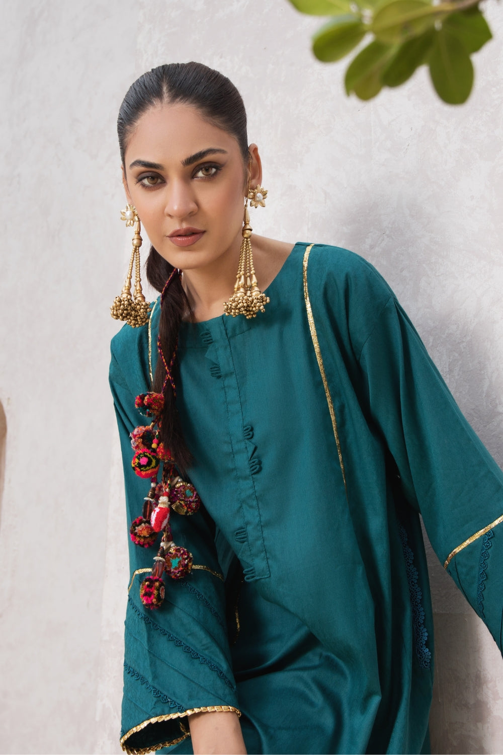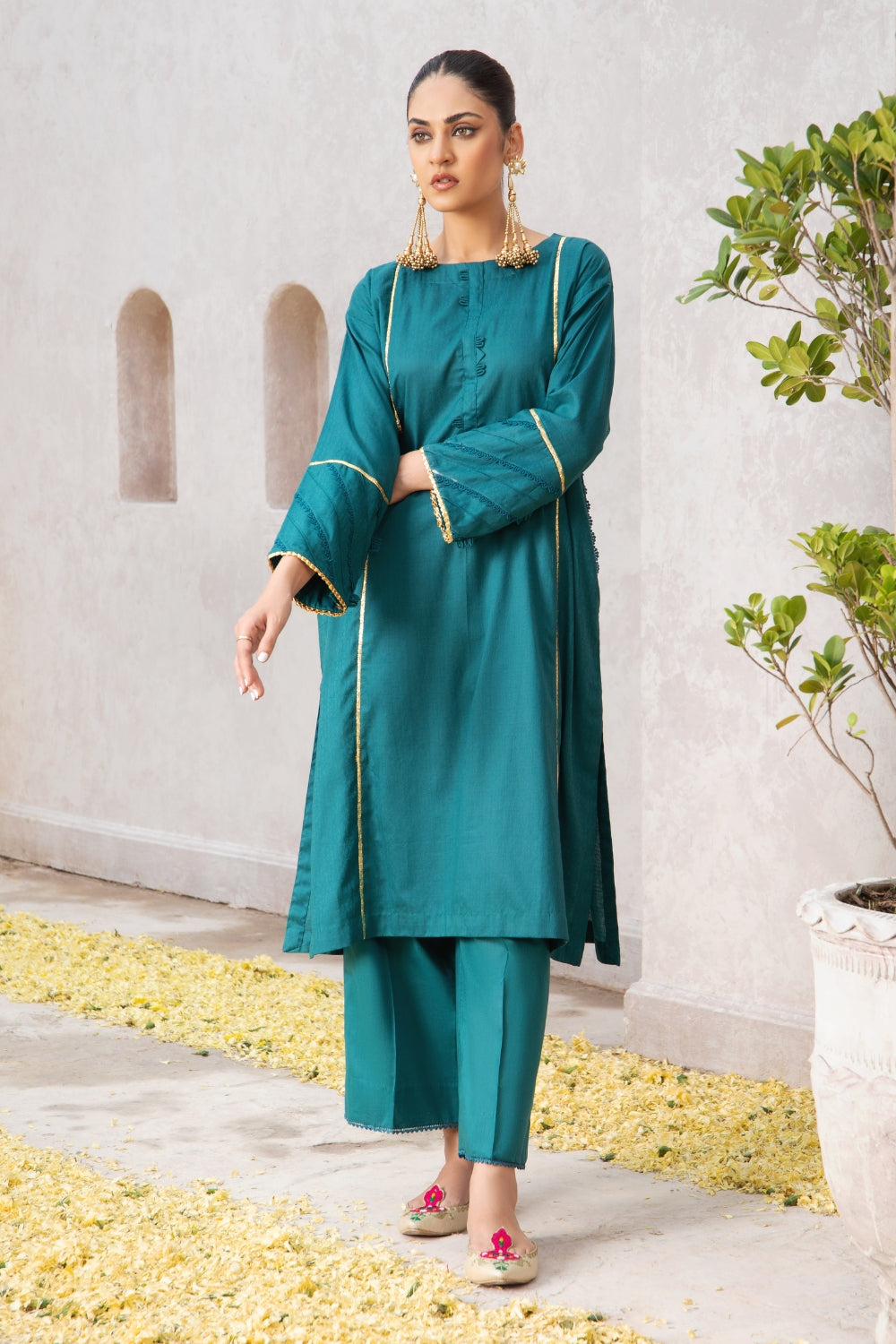 Stitched articles come with trousers tailored to match the unstitched trouser fabric provided. Please note that any appearance of shararas/ghararas in product images is for shoot purposes only unless otherwise specified in product details.