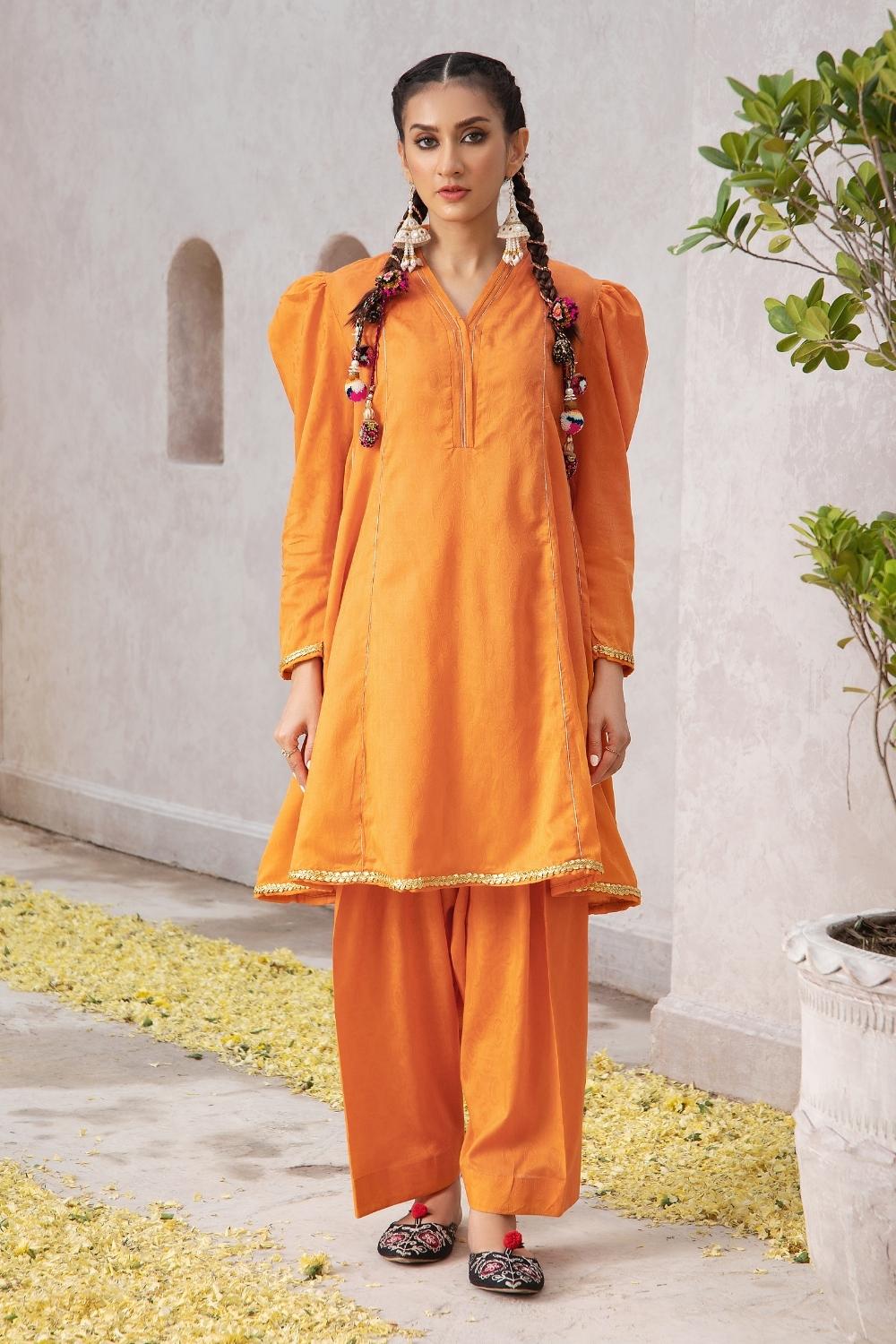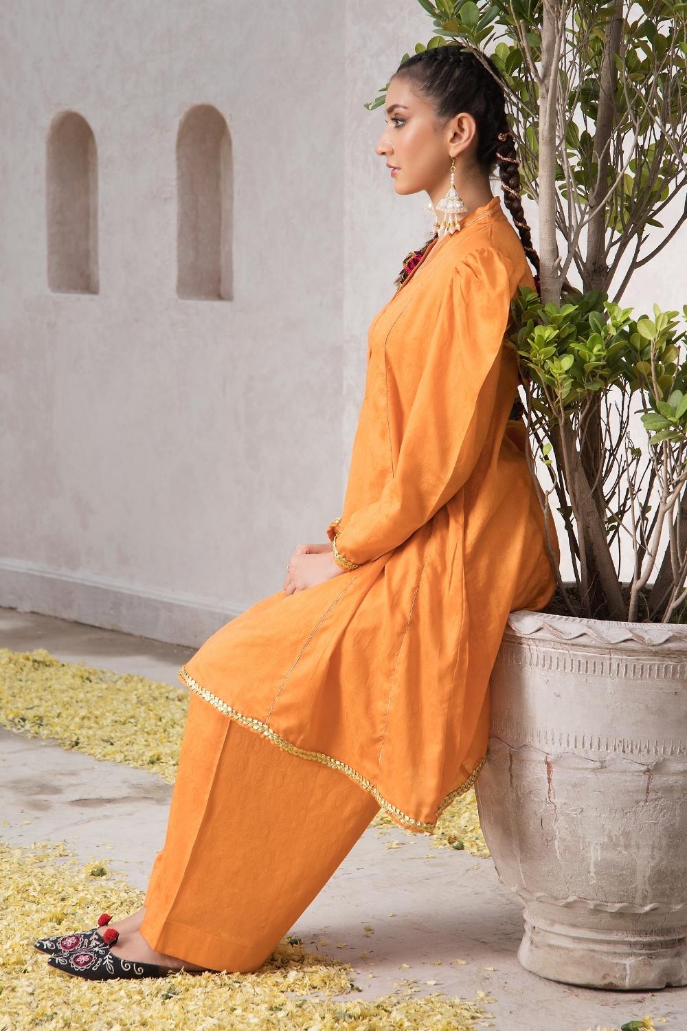 Stitched articles come with trousers tailored to match the unstitched trouser fabric provided. Please note that any appearance of shararas/ghararas in product images is for shoot purposes only unless otherwise specified in product details.