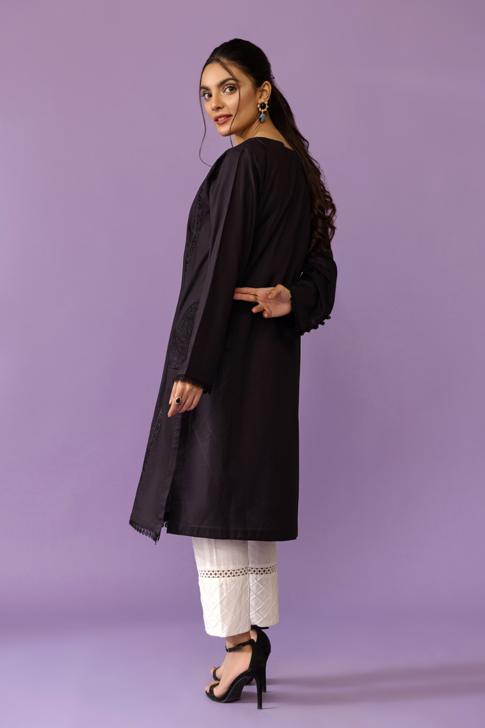 Stitched articles come with trousers tailored to match the unstitched trouser fabric provided. Please note that any appearance of shararas/ghararas in product images is for shoot purposes only unless otherwise specified in product details.