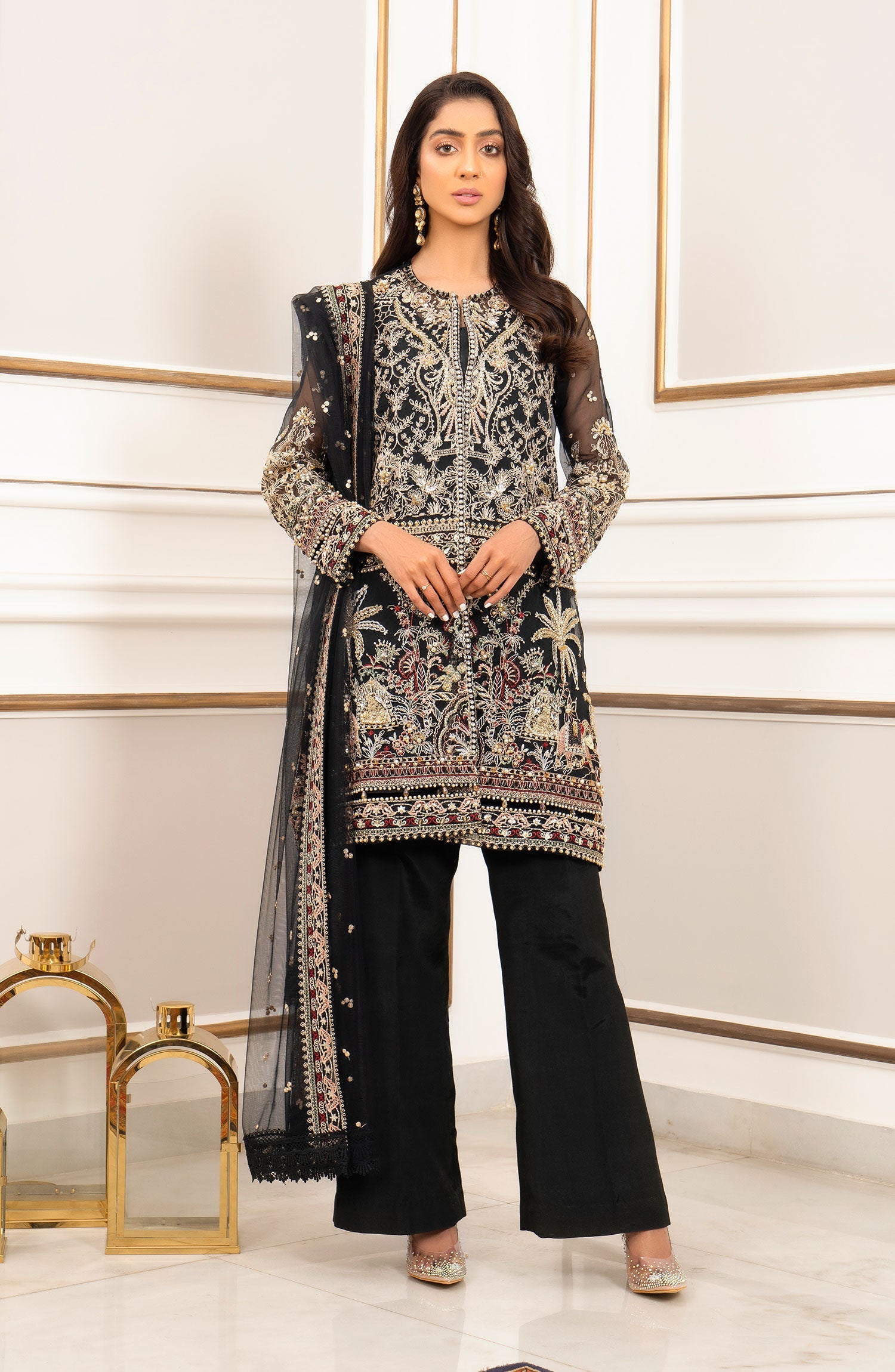 Stitched articles come with trousers tailored to match the unstitched trouser fabric provided. Please note that any appearance of shararas/ghararas in product images is for shoot purposes only unless otherwise specified in product details.