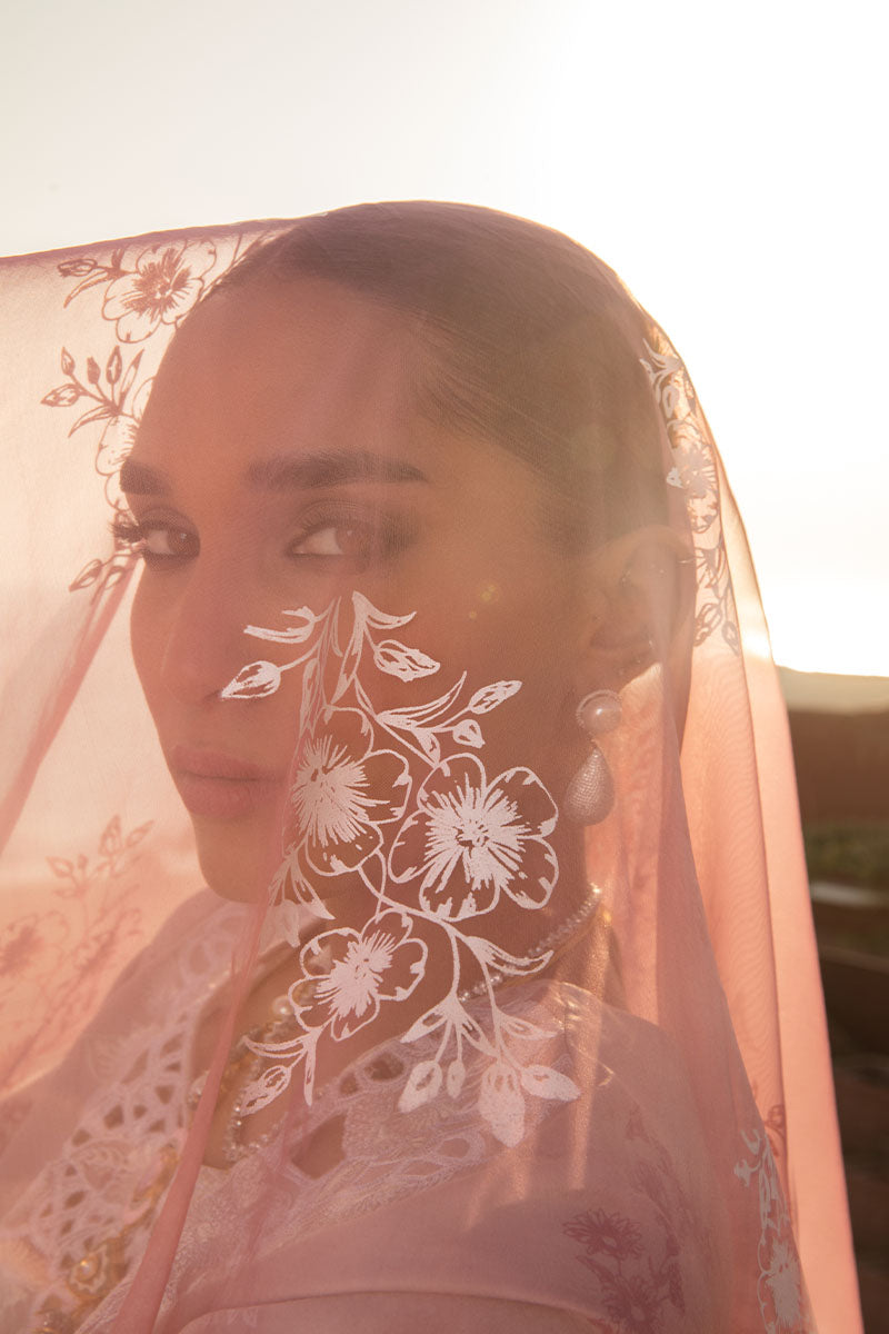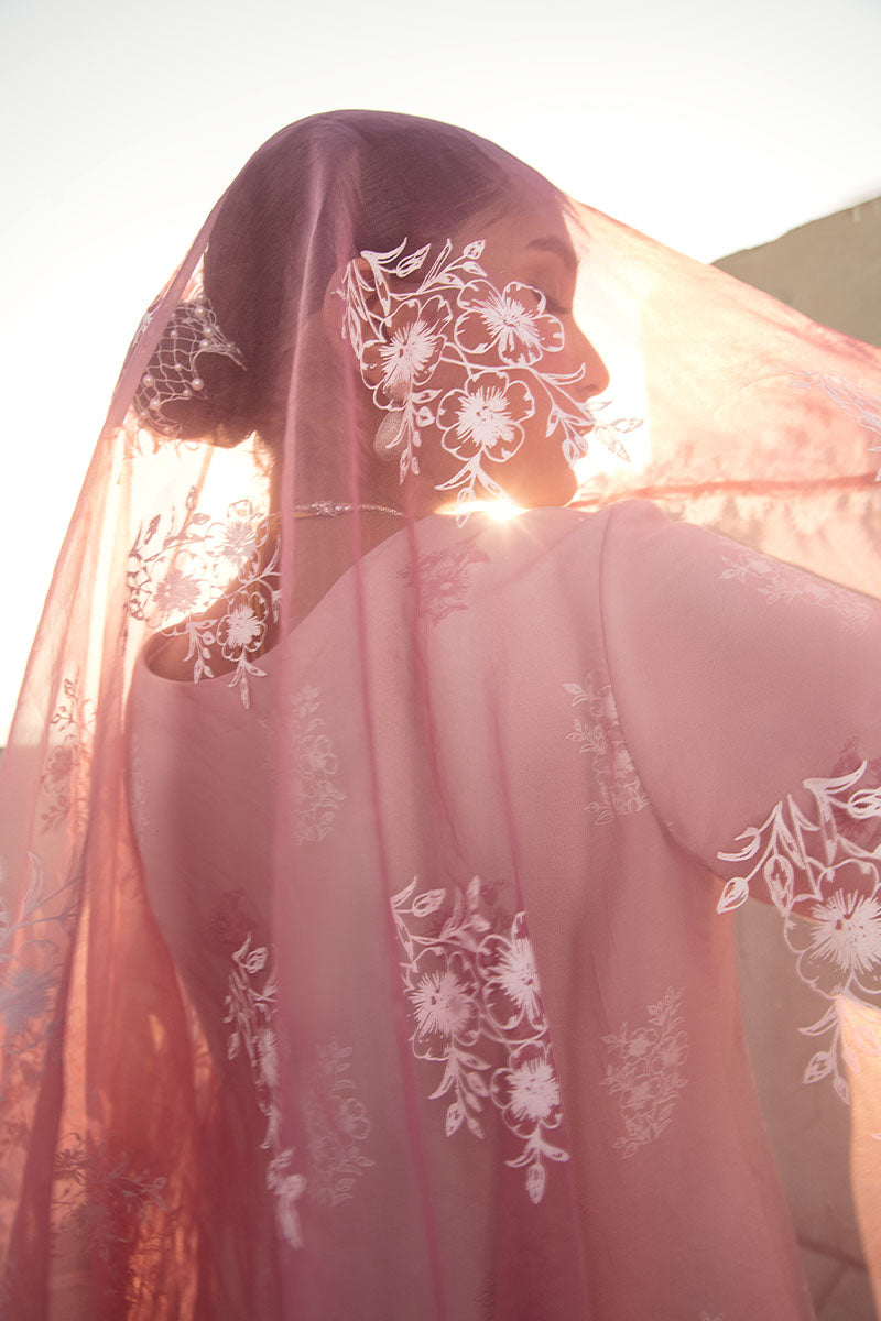 Hand made paste printed dupatta on dyed organza – 2.75 yards
