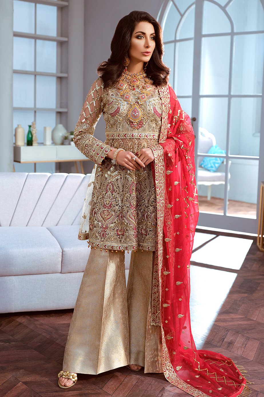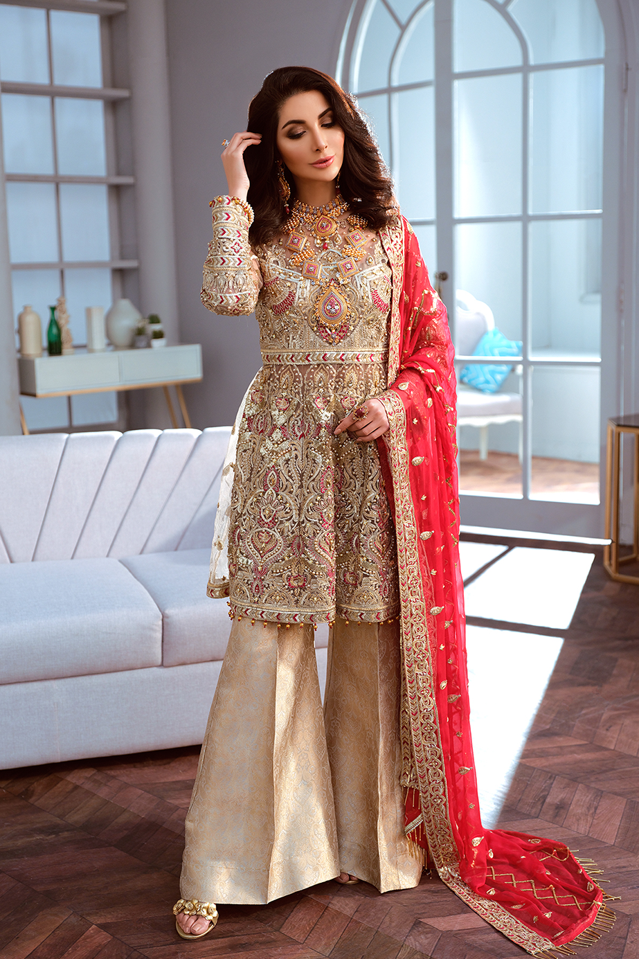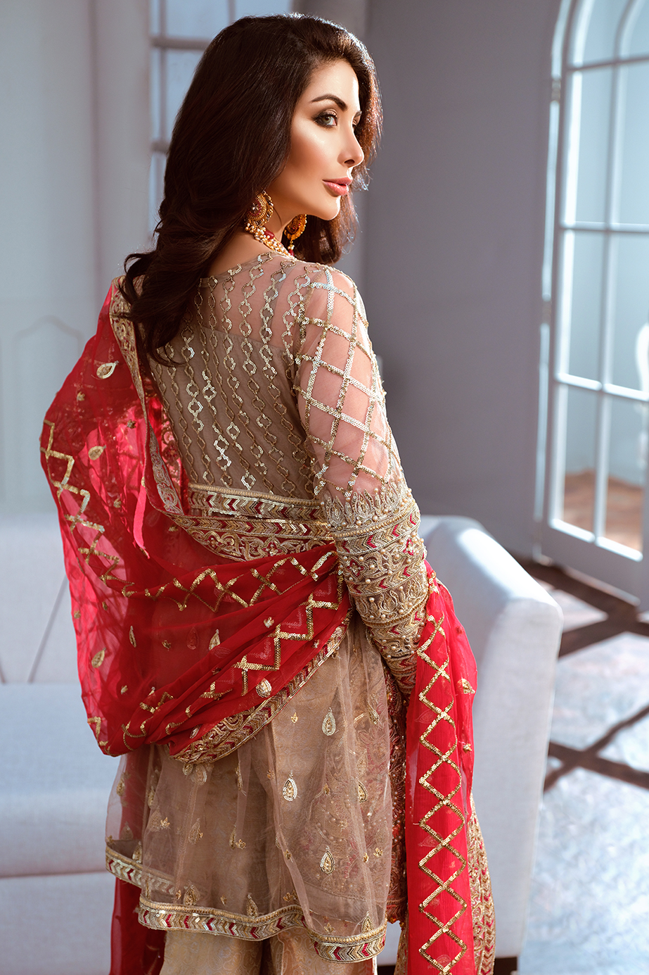 Stitched articles come with trousers tailored to match the unstitched trouser fabric provided. Please note that any appearance of shararas/ghararas in product images is for shoot purposes only unless otherwise specified in product details.