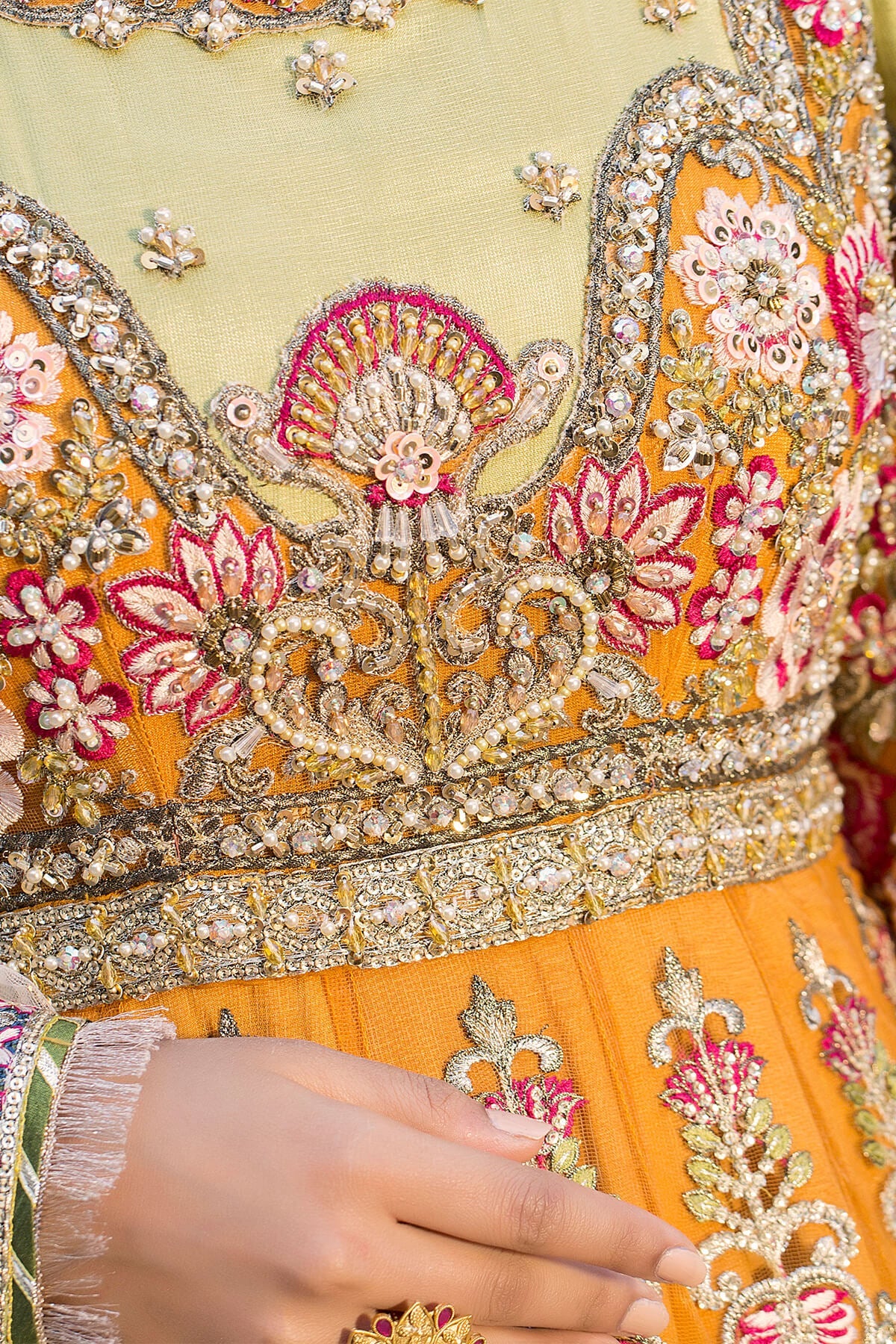 Breathtaking details on our handmade bridal outfit, perfect embellishments and ornamentation with outstanding color amalgamation.