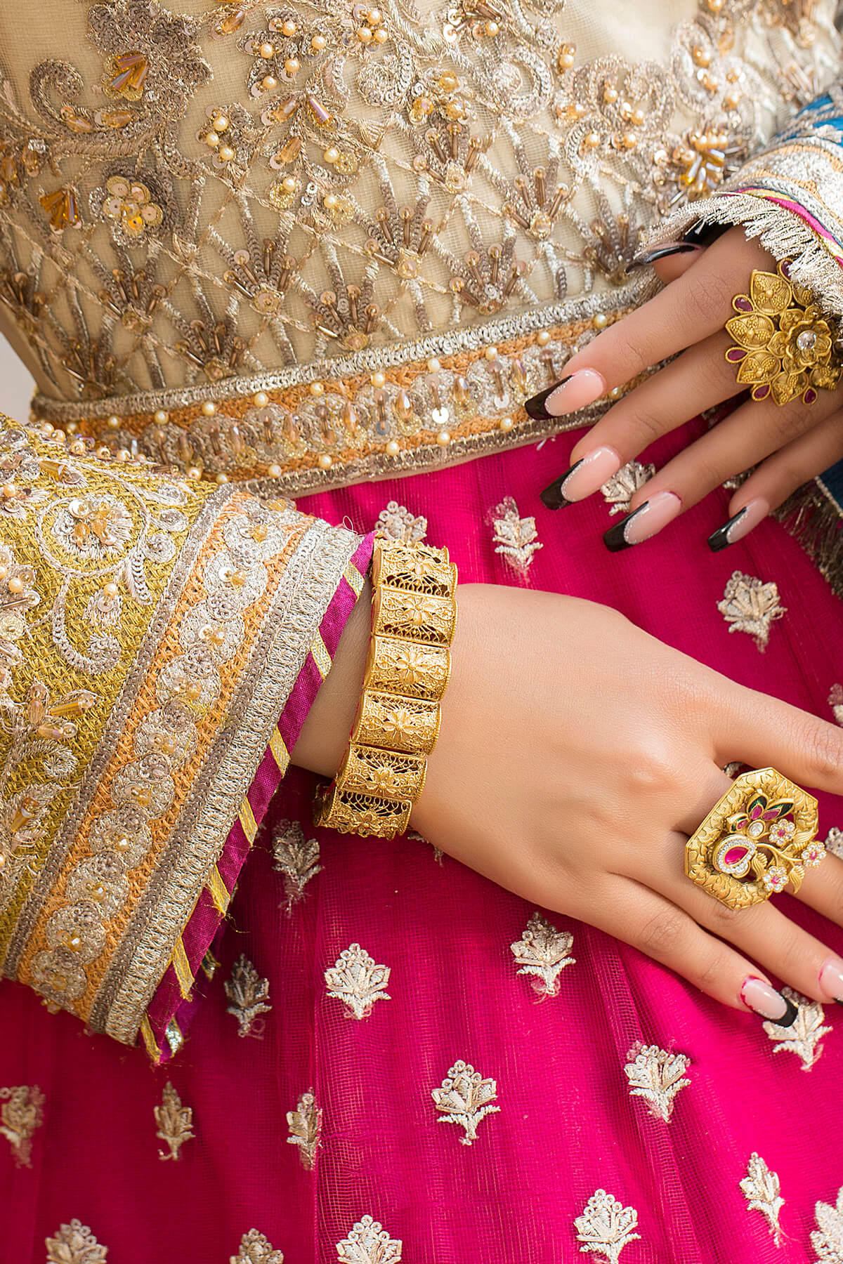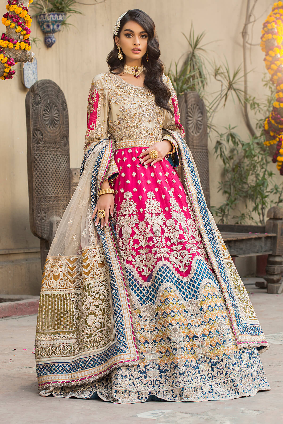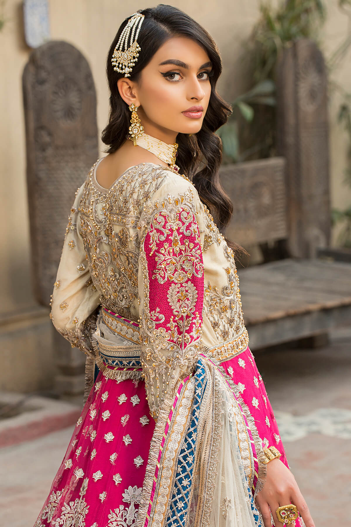 Exclusive handmade bridal outfit with exquisite patterns and outstanding detailing, perfect ensemble for your wedding.