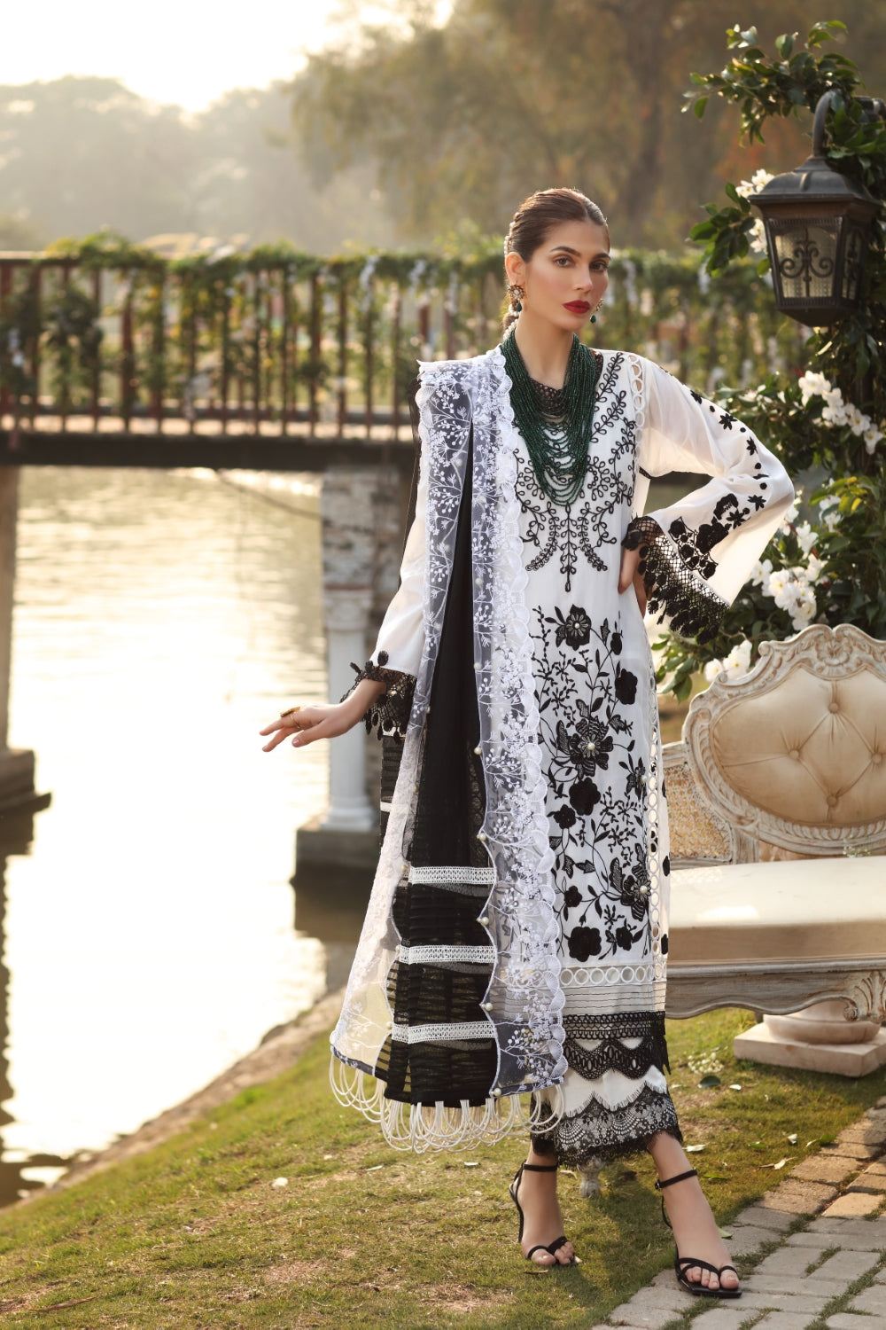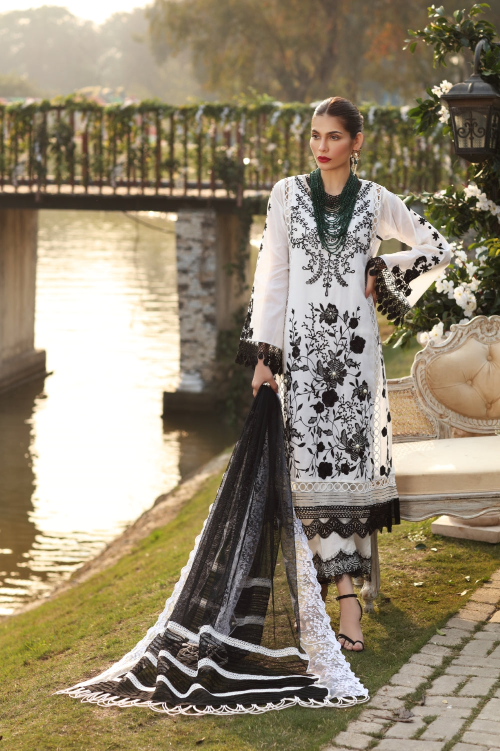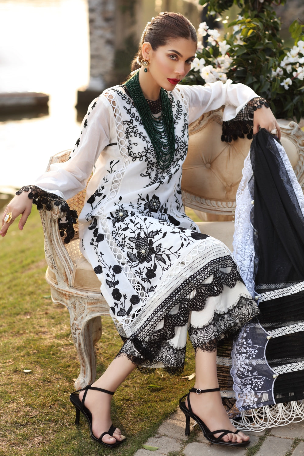 Stitched articles come with trousers tailored to match the unstitched trouser fabric provided. Please note that any appearance of shararas/ghararas in product images is for shoot purposes only unless otherwise specified in product details.