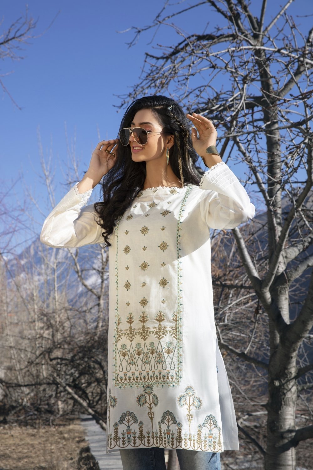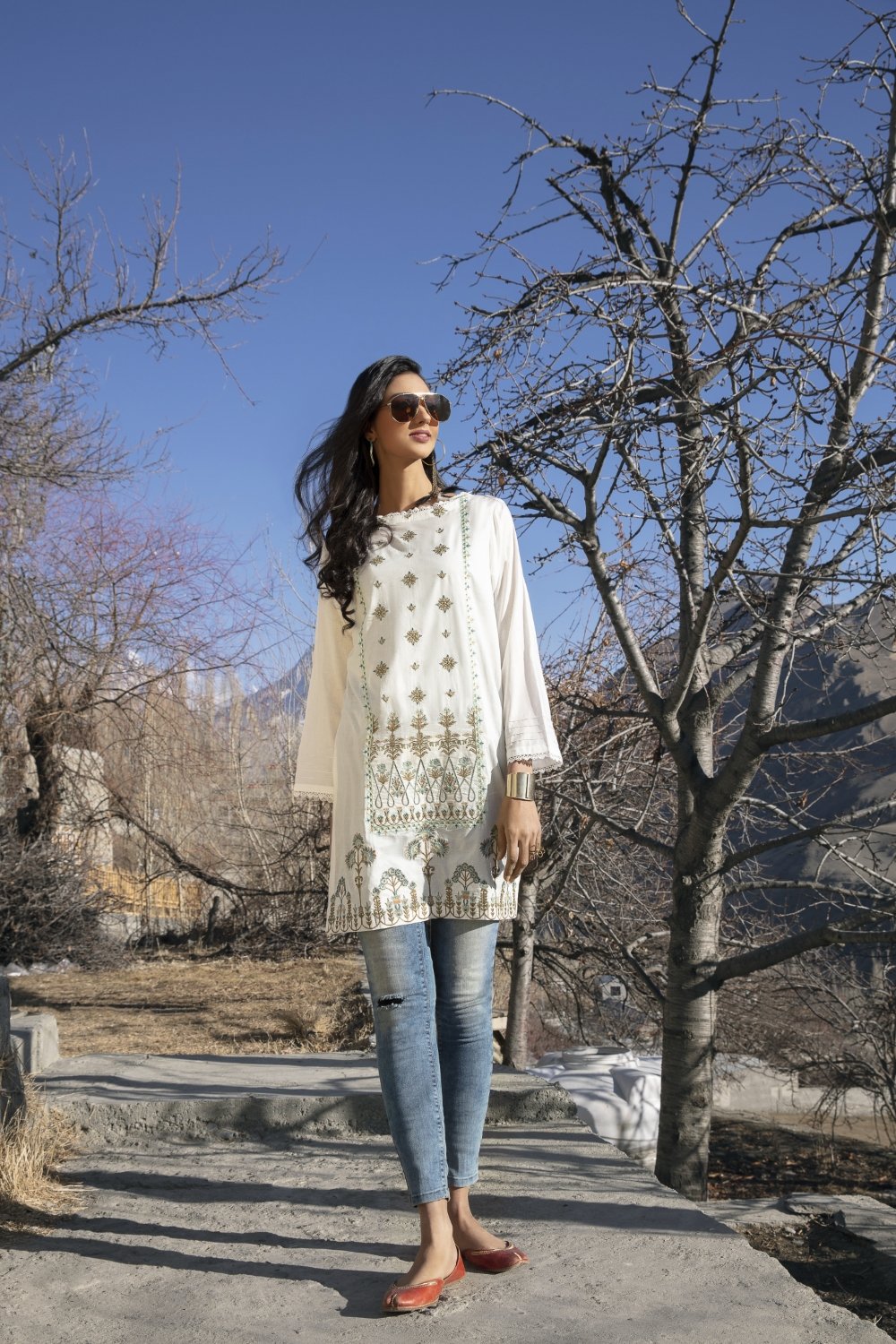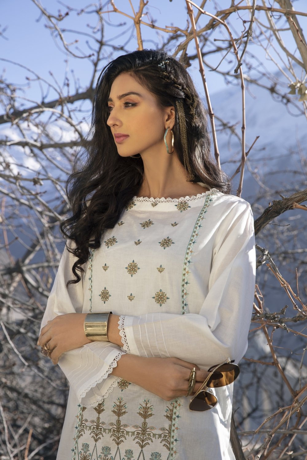 Stitched articles come with trousers tailored to match the unstitched trouser fabric provided. Please note that any appearance of shararas/ghararas in product images is for shoot purposes only unless otherwise specified in product details.
