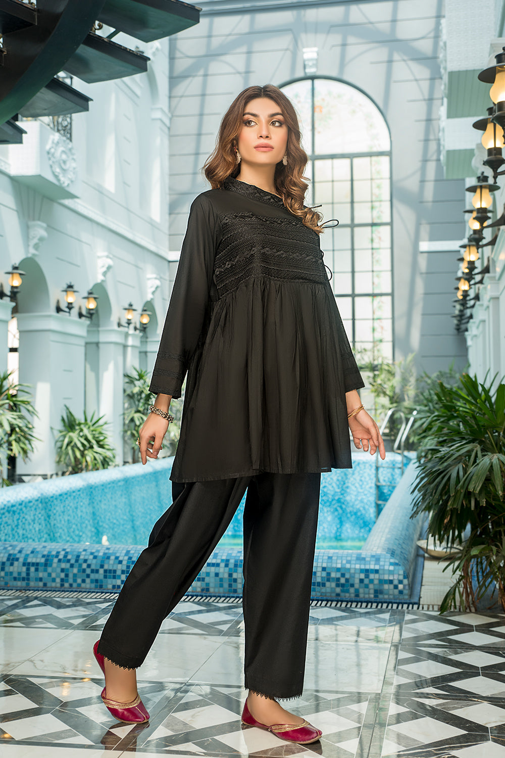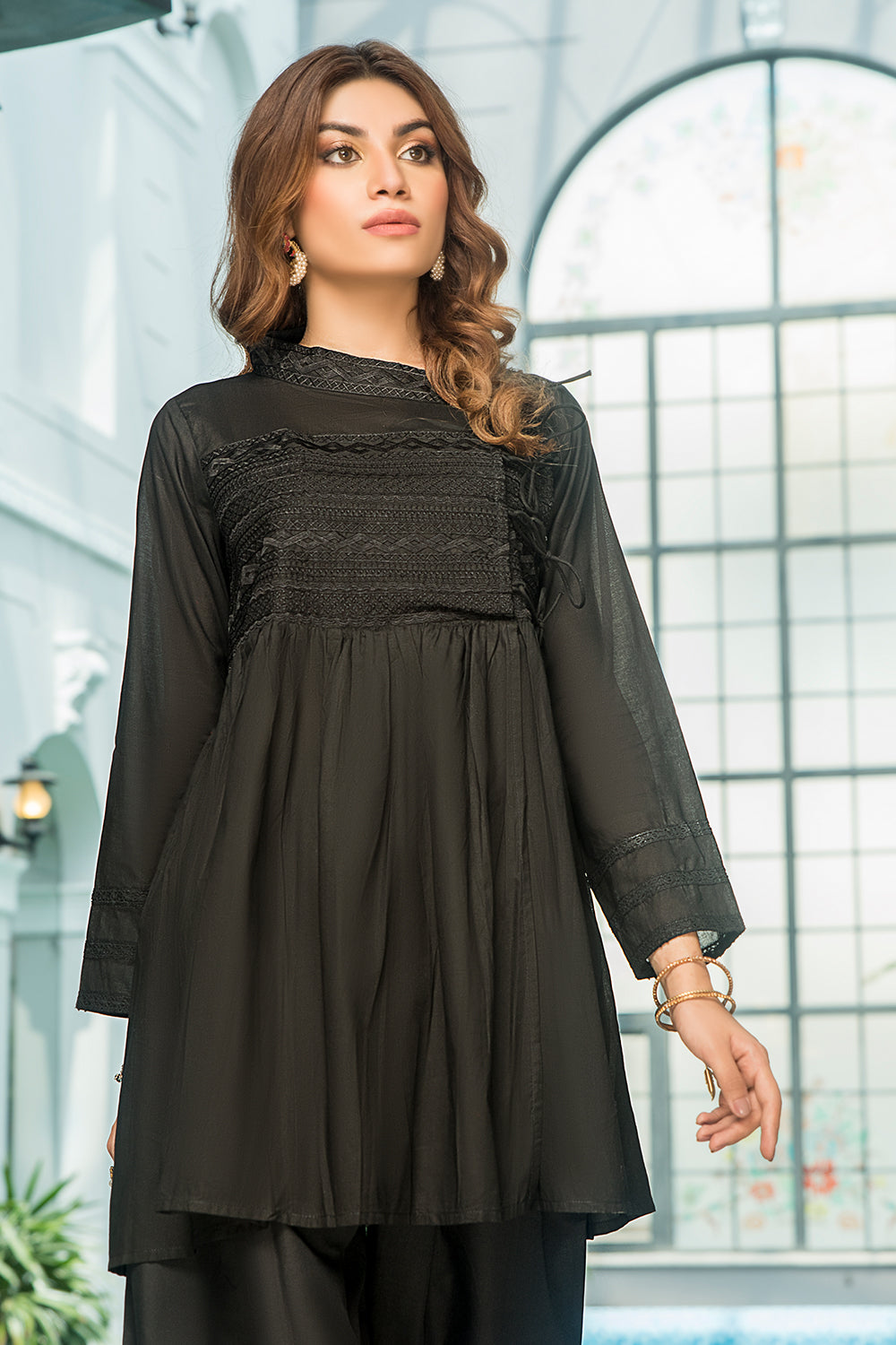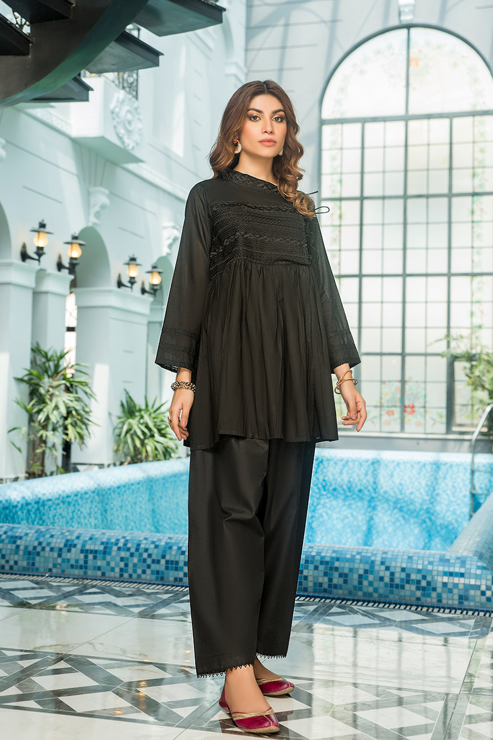 Stitched articles come with trousers tailored to match the unstitched trouser fabric provided. Please note that any appearance of shararas/ghararas in product images is for shoot purposes only unless otherwise specified in product details.
