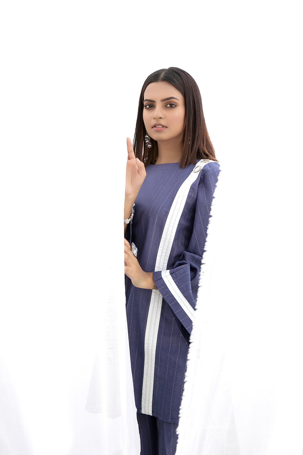 Stitched articles come with trousers tailored to match the unstitched trouser fabric provided. Please note that any appearance of shararas/ghararas in product images is for shoot purposes only unless otherwise specified in product details.