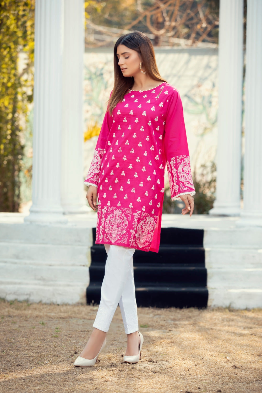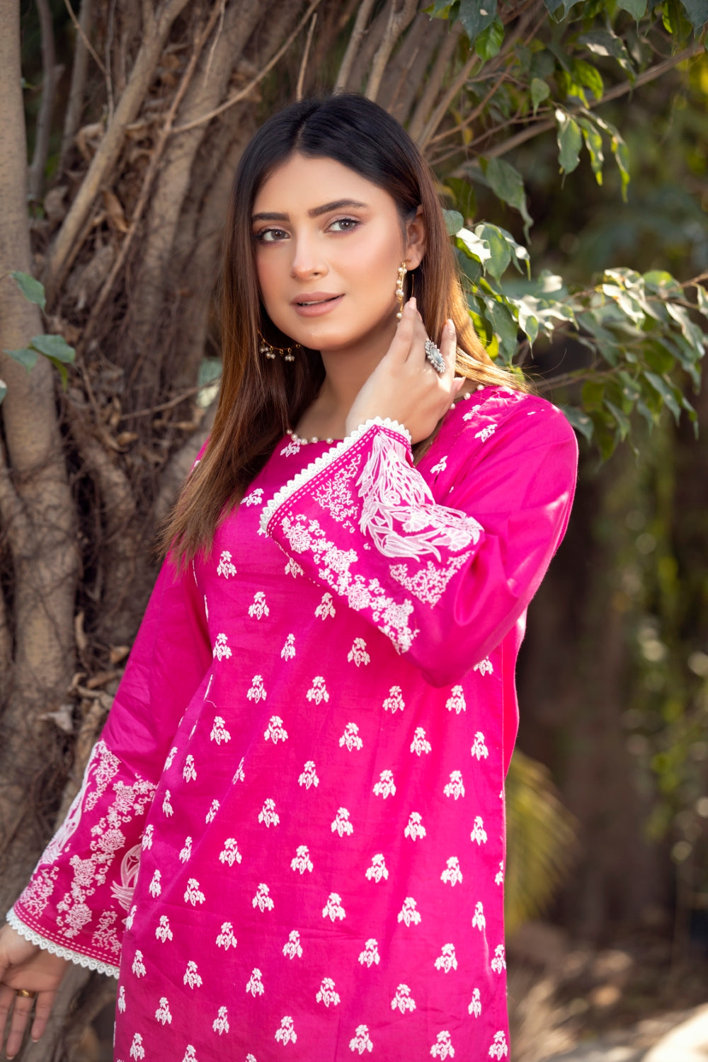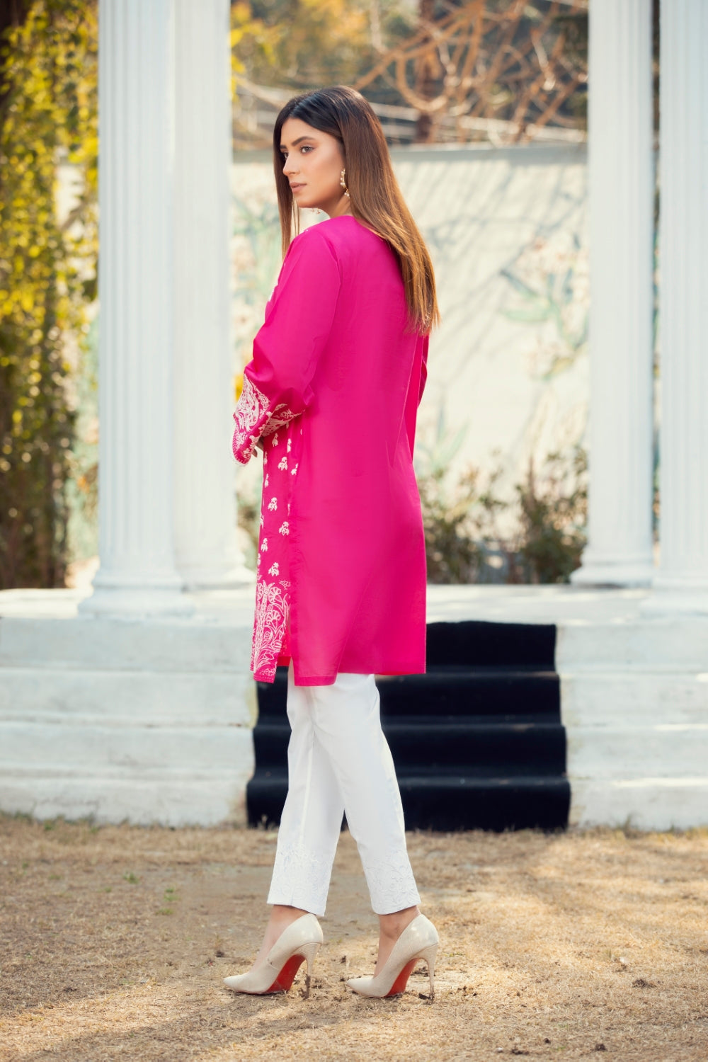 Stitched articles come with trousers tailored to match the unstitched trouser fabric provided. Please note that any appearance of shararas/ghararas in product images is for shoot purposes only unless otherwise specified in product details.