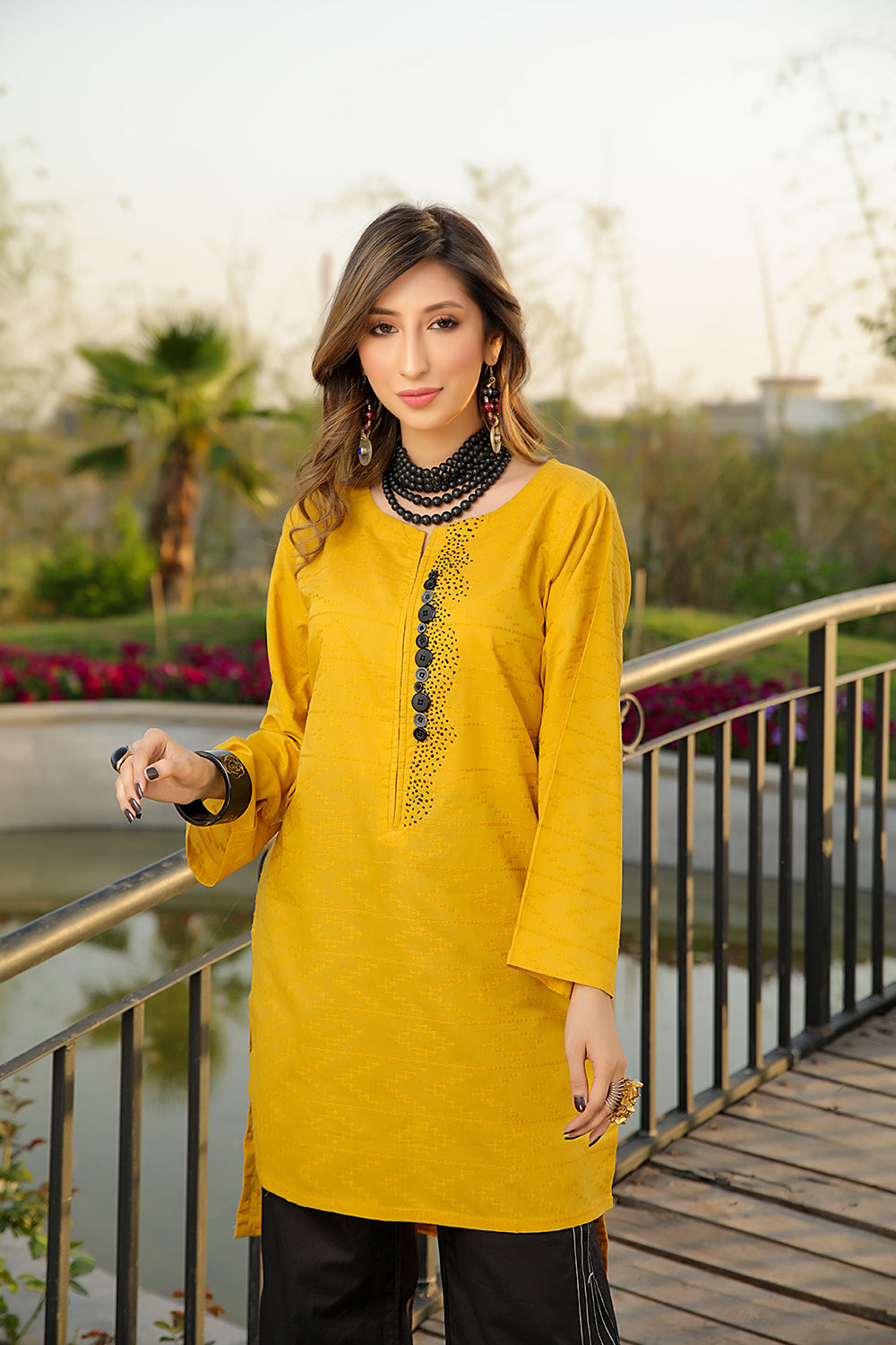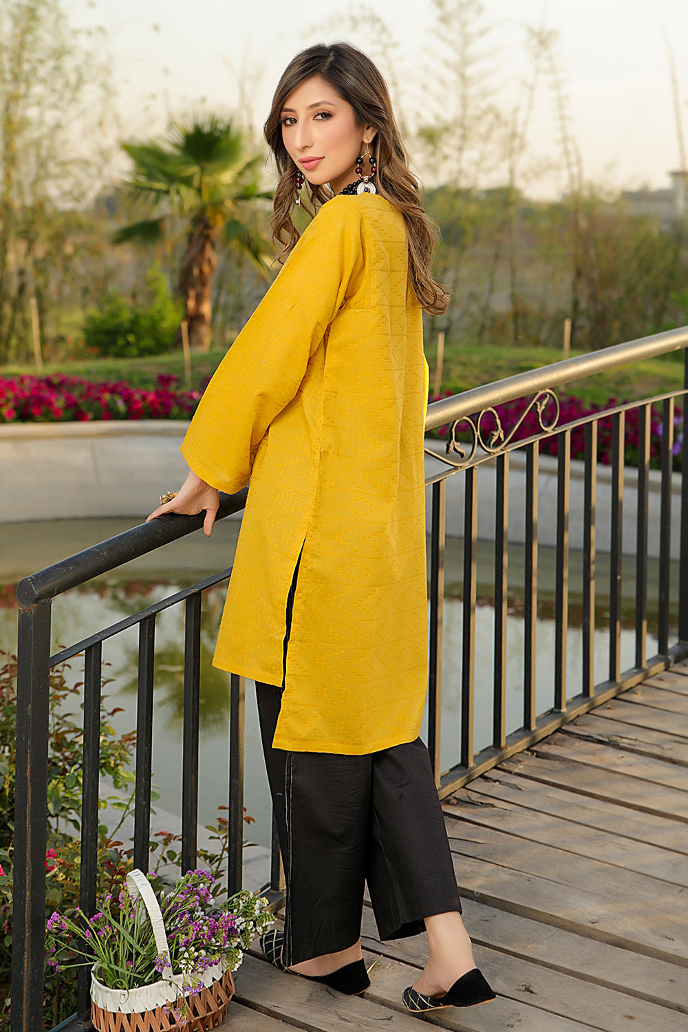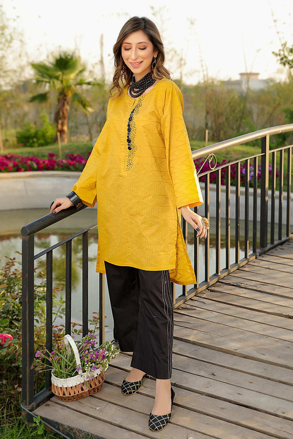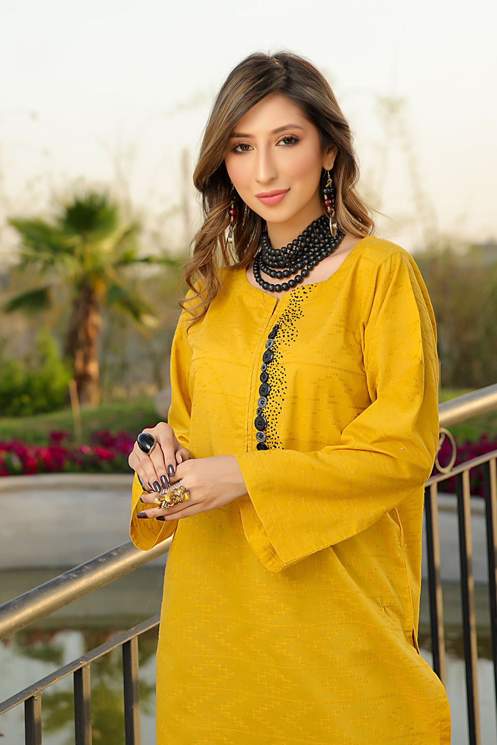 Stitched articles come with trousers tailored to match the unstitched trouser fabric provided. Please note that any appearance of shararas/ghararas in product images is for shoot purposes only unless otherwise specified in product details.