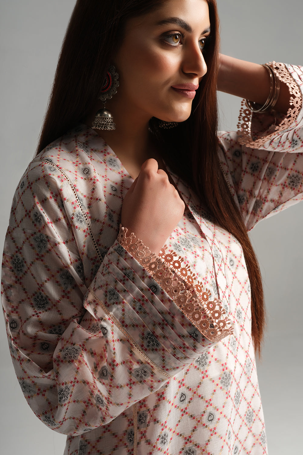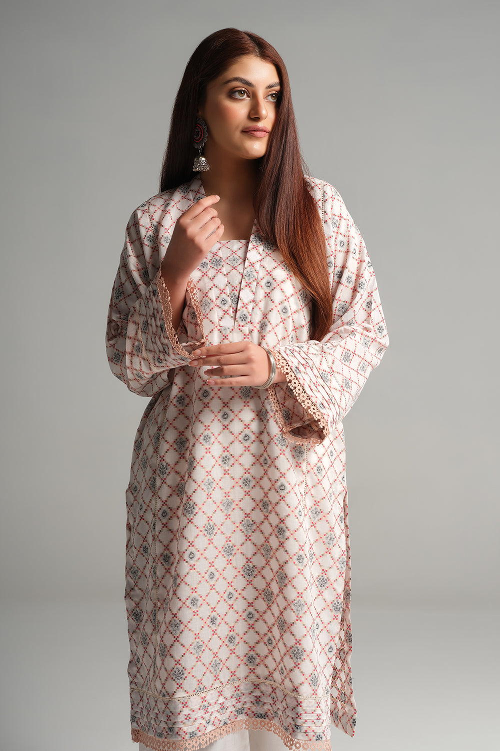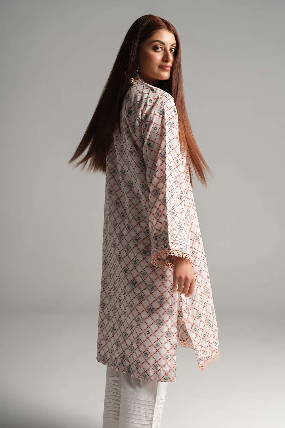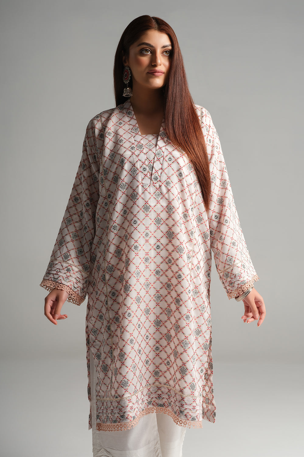 Stitched articles come with trousers tailored to match the unstitched trouser fabric provided. Please note that any appearance of shararas/ghararas in product images is for shoot purposes only unless otherwise specified in product details.