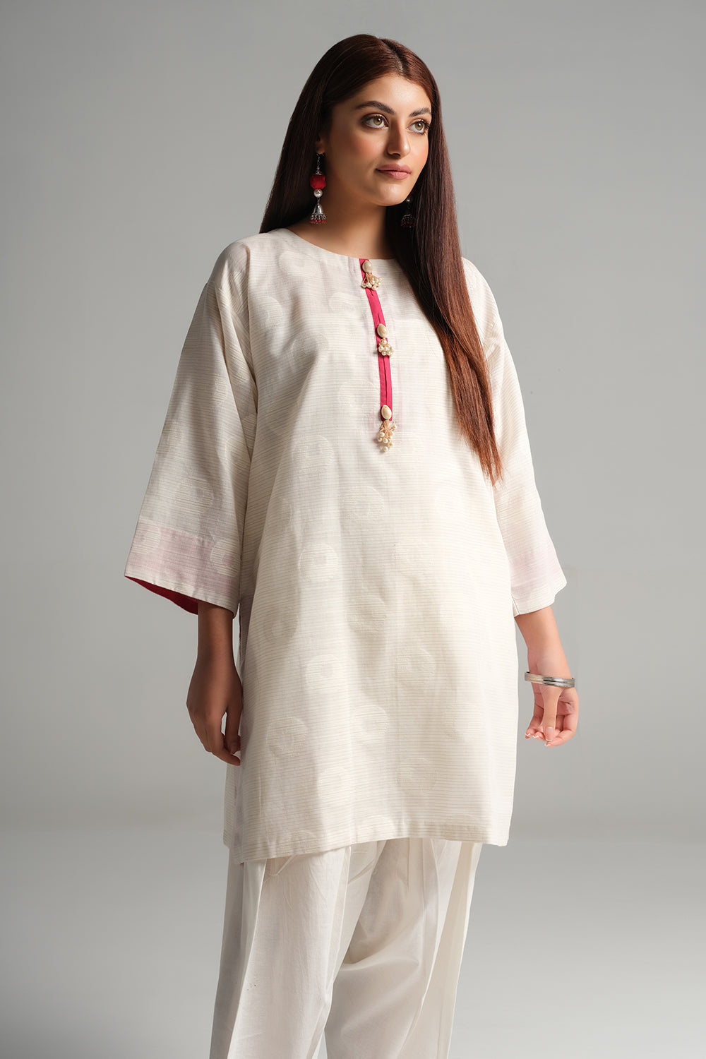 Stitched articles come with trousers tailored to match the unstitched trouser fabric provided. Please note that any appearance of shararas/ghararas in product images is for shoot purposes only unless otherwise specified in product details.