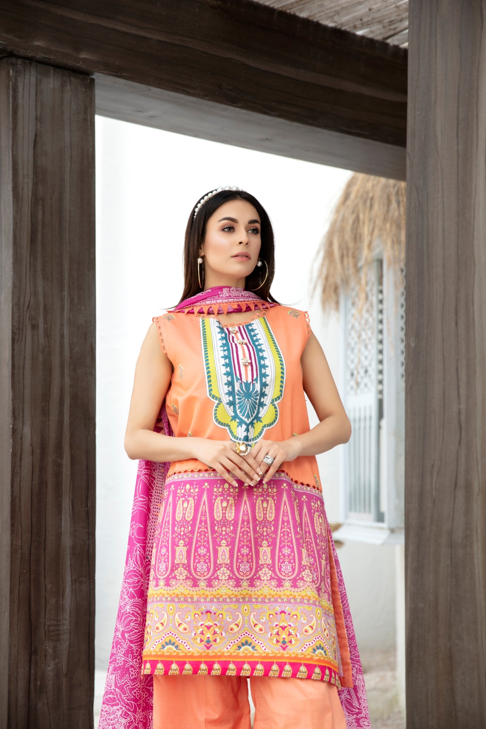 Stitched articles come with trousers tailored to match the unstitched trouser fabric provided. Please note that any appearance of shararas/ghararas in product images is for shoot purposes only unless otherwise specified in product details.