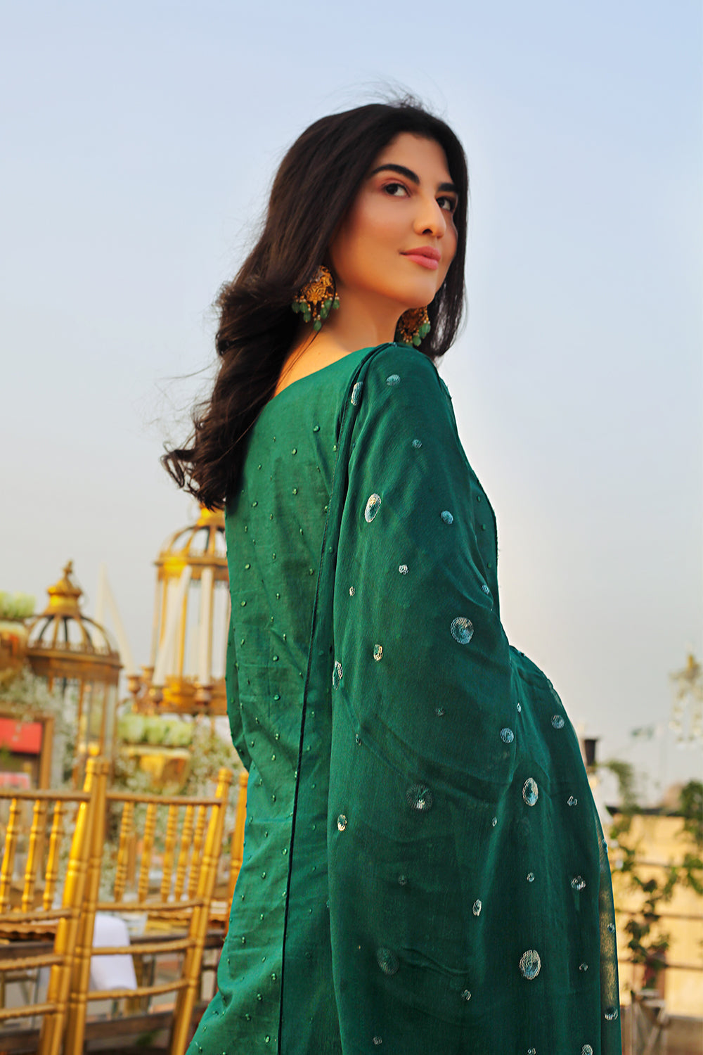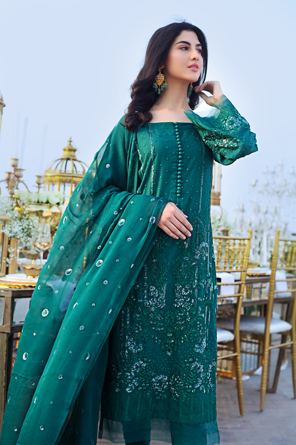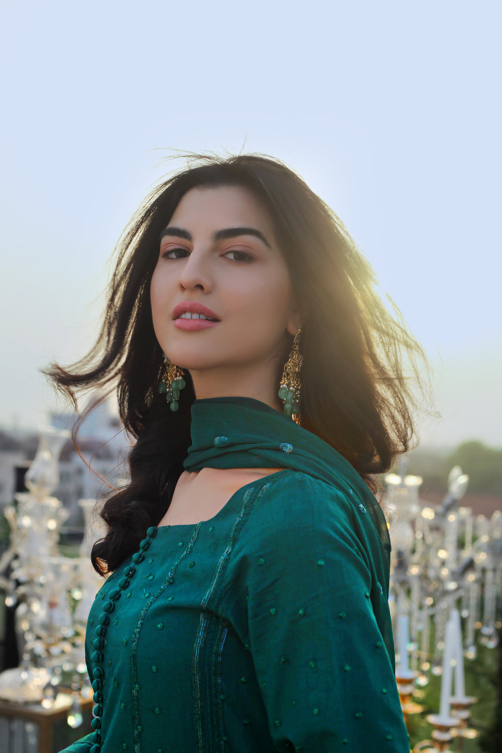 Stitched articles come with trousers tailored to match the unstitched trouser fabric provided. Please note that any appearance of shararas/ghararas in product images is for shoot purposes only unless otherwise specified in product details.
