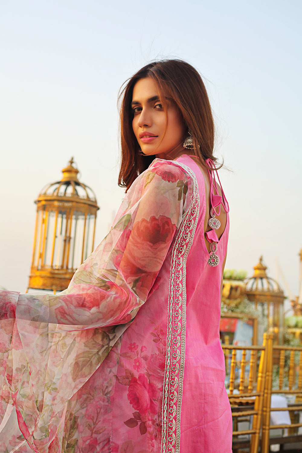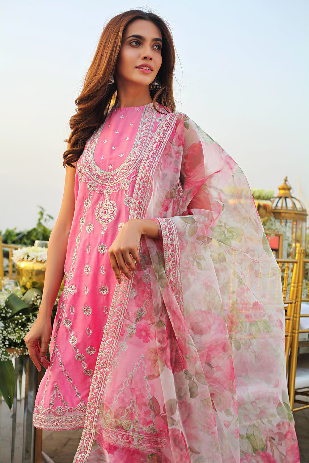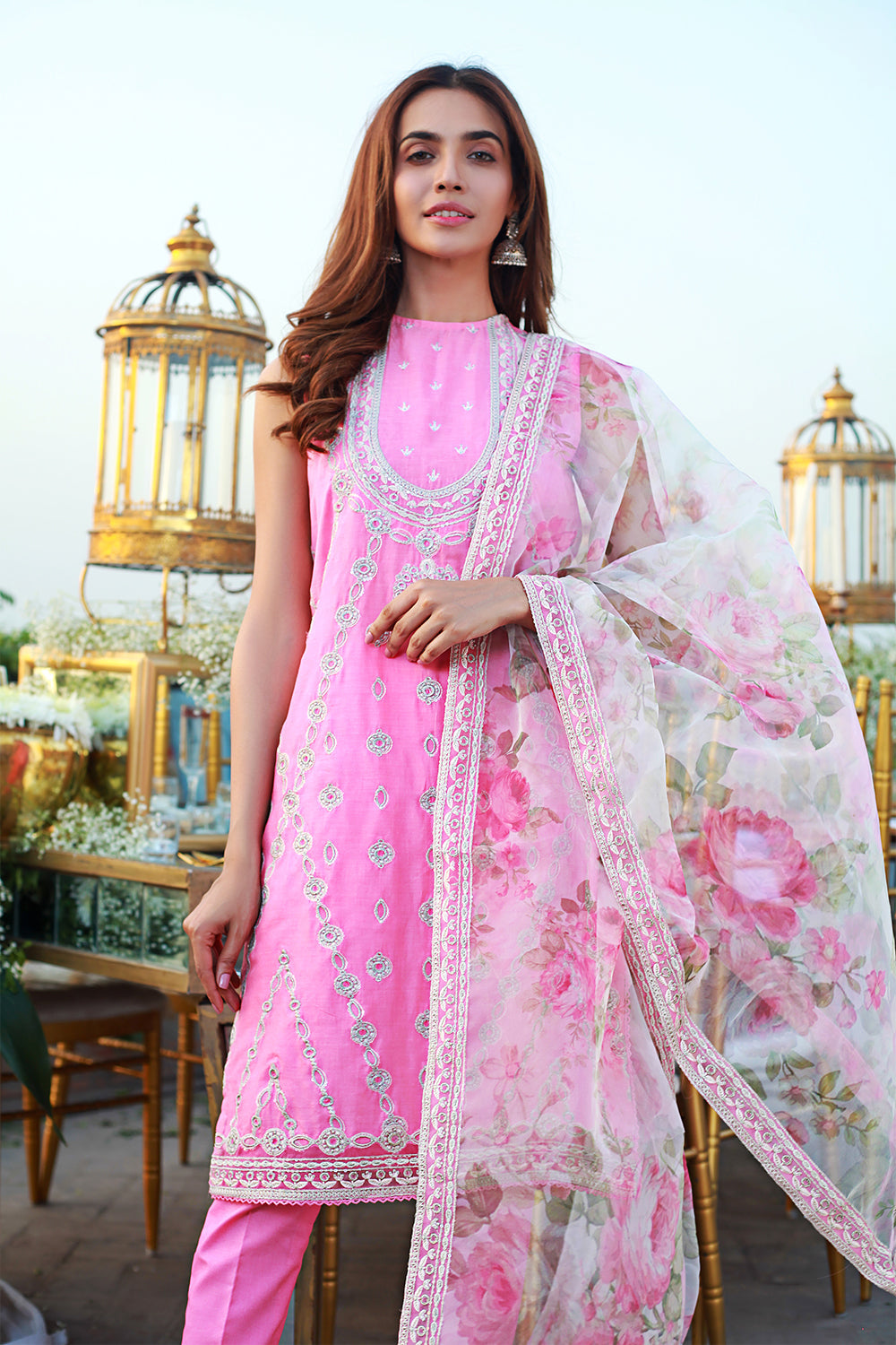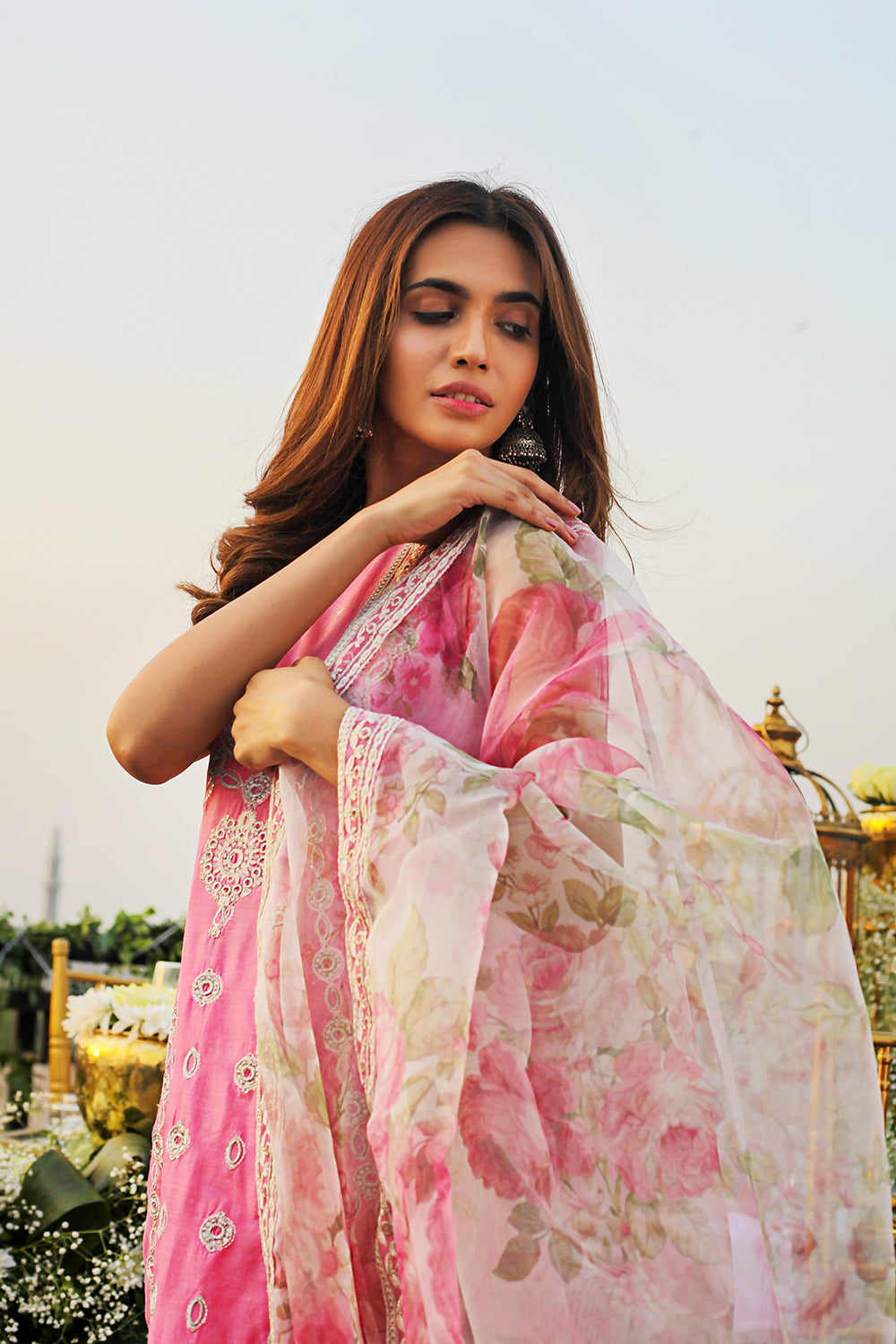 Stitched articles come with trousers tailored to match the unstitched trouser fabric provided. Please note that any appearance of shararas/ghararas in product images is for shoot purposes only unless otherwise specified in product details.