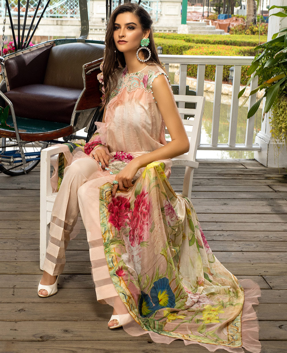 Stitched articles come with trousers tailored to match the unstitched trouser fabric provided. Please note that any appearance of shararas/ghararas in product images is for shoot purposes only unless otherwise specified in product details.