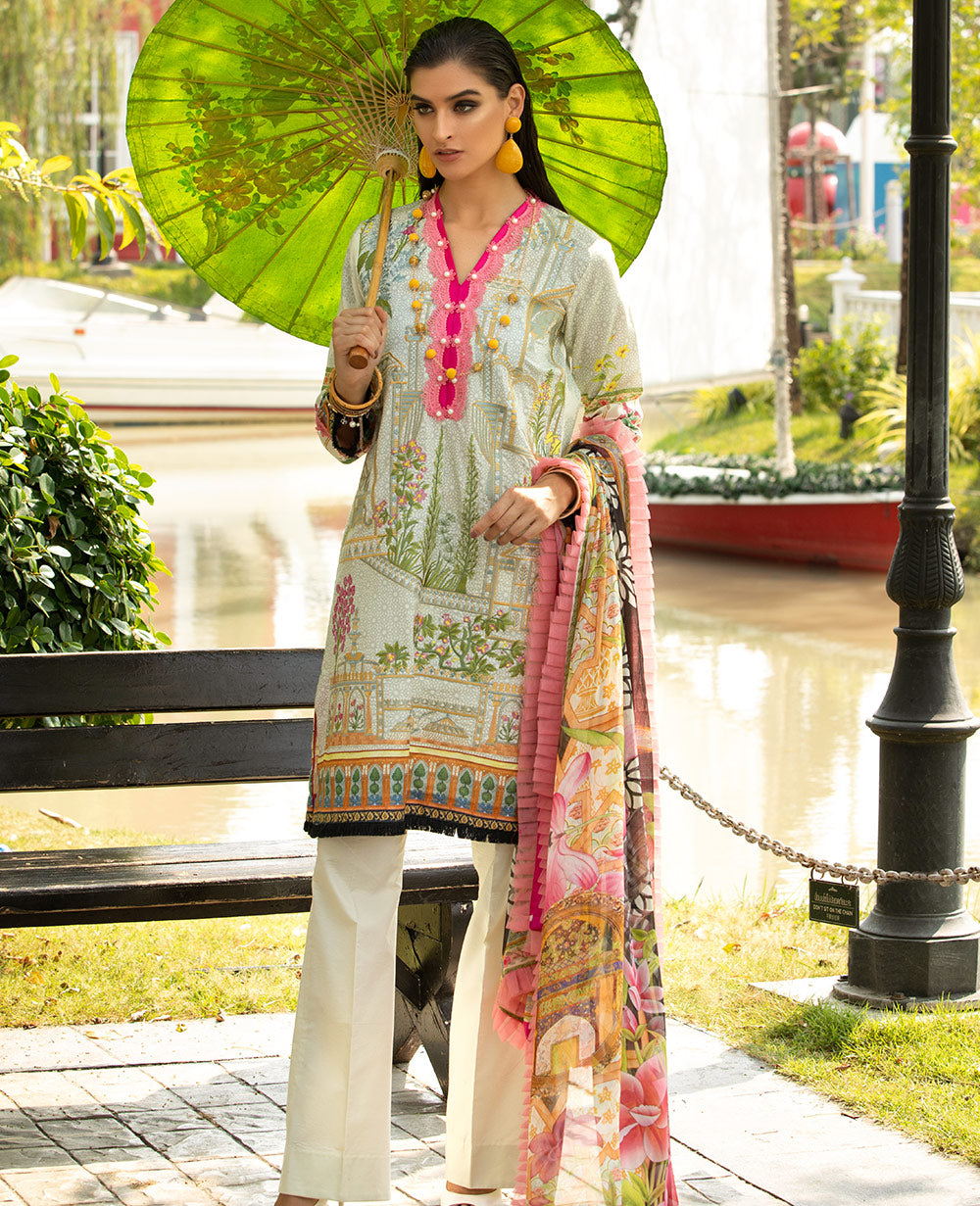 Stitched articles come with trousers tailored to match the unstitched trouser fabric provided. Please note that any appearance of shararas/ghararas in product images is for shoot purposes only unless otherwise specified in product details.