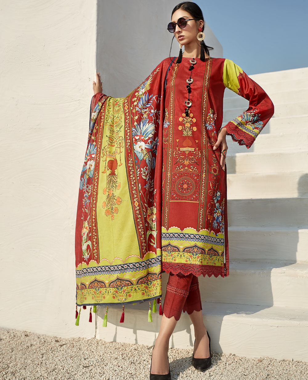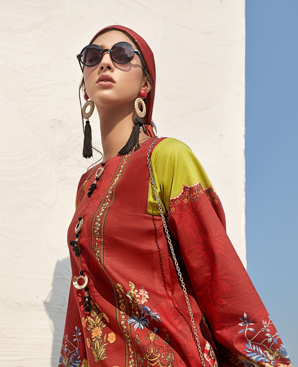Stitched articles come with trousers tailored to match the unstitched trouser fabric provided. Please note that any appearance of shararas/ghararas in product images is for shoot purposes only unless otherwise specified in product details.