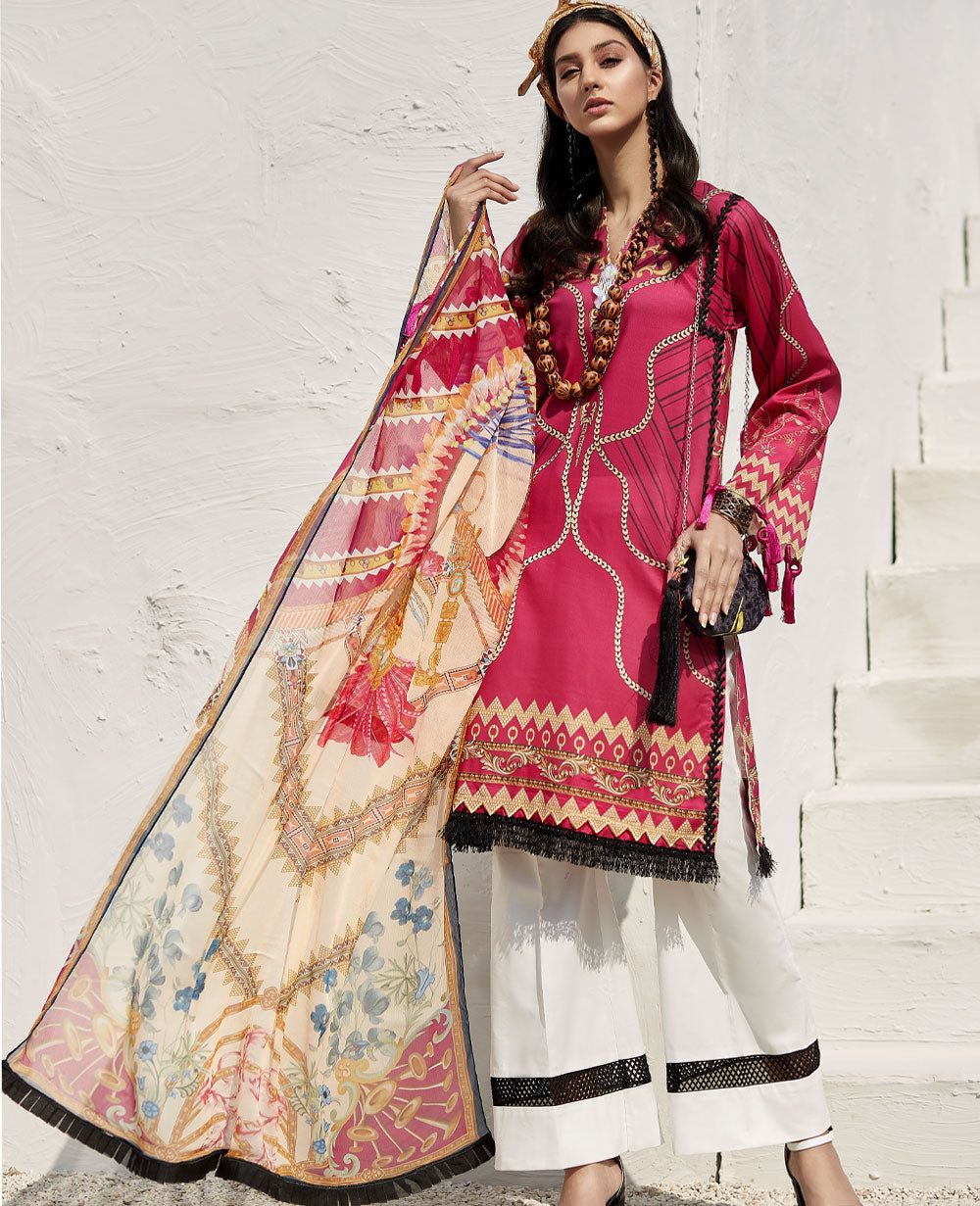 Stitched articles come with trousers tailored to match the unstitched trouser fabric provided. Please note that any appearance of shararas/ghararas in product images is for shoot purposes only unless otherwise specified in product details.