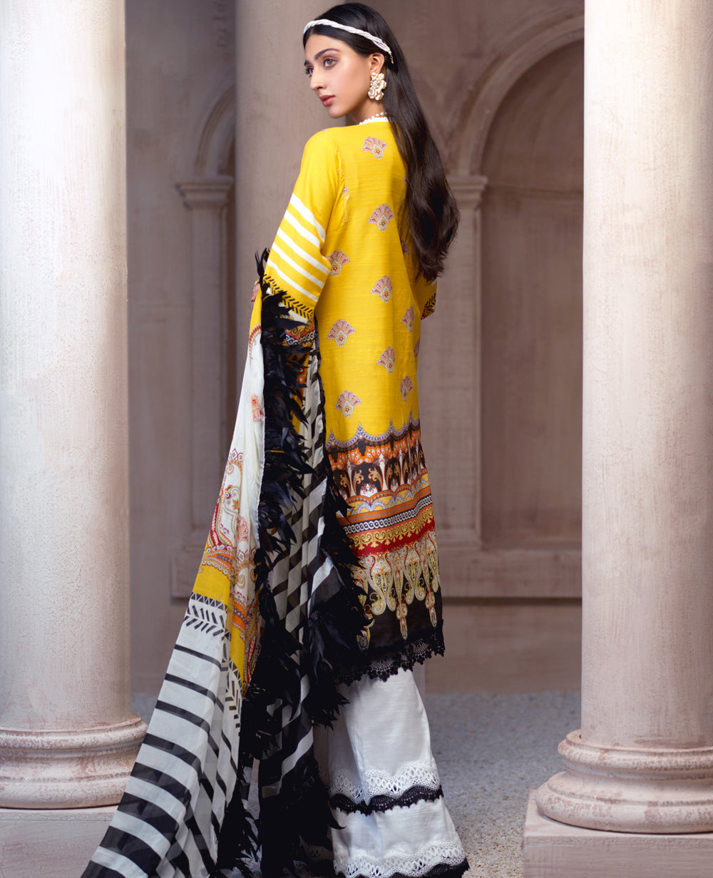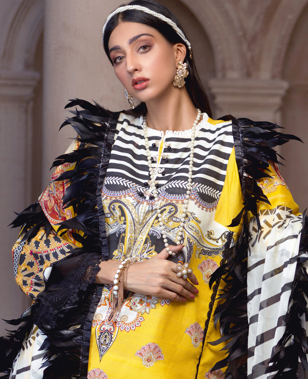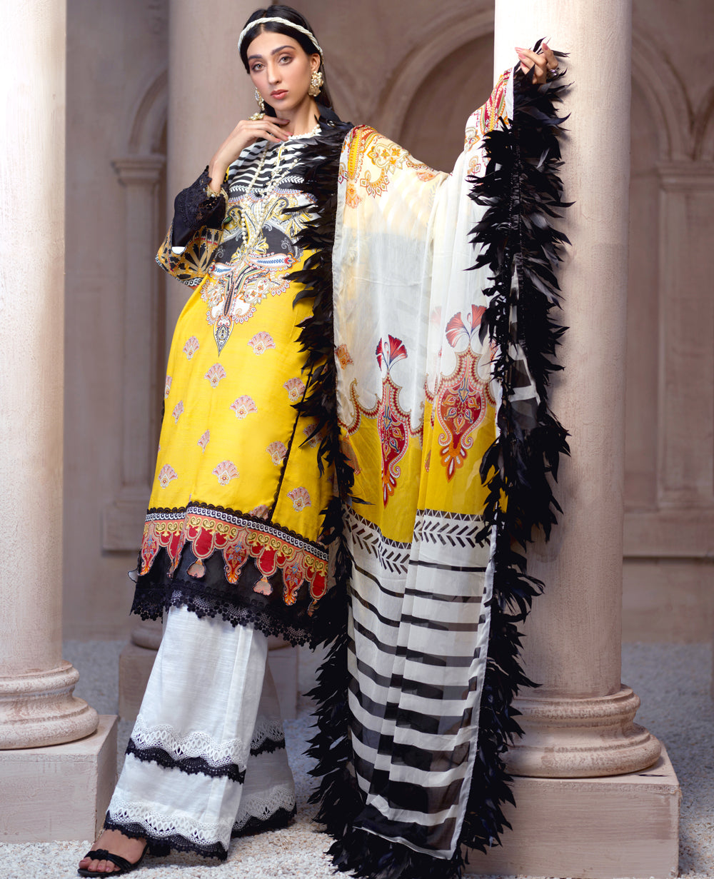 Stitched articles come with trousers tailored to match the unstitched trouser fabric provided. Please note that any appearance of shararas/ghararas in product images is for shoot purposes only unless otherwise specified in product details.
